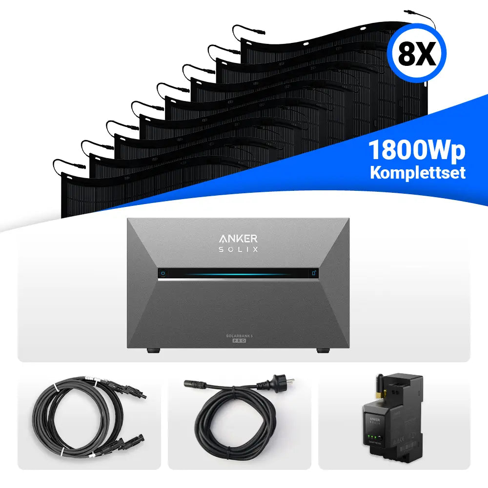 1800W Balkonkraftwerk – solago mit flexiblen Solarmodulen 8x225W Set mit Speicheroption