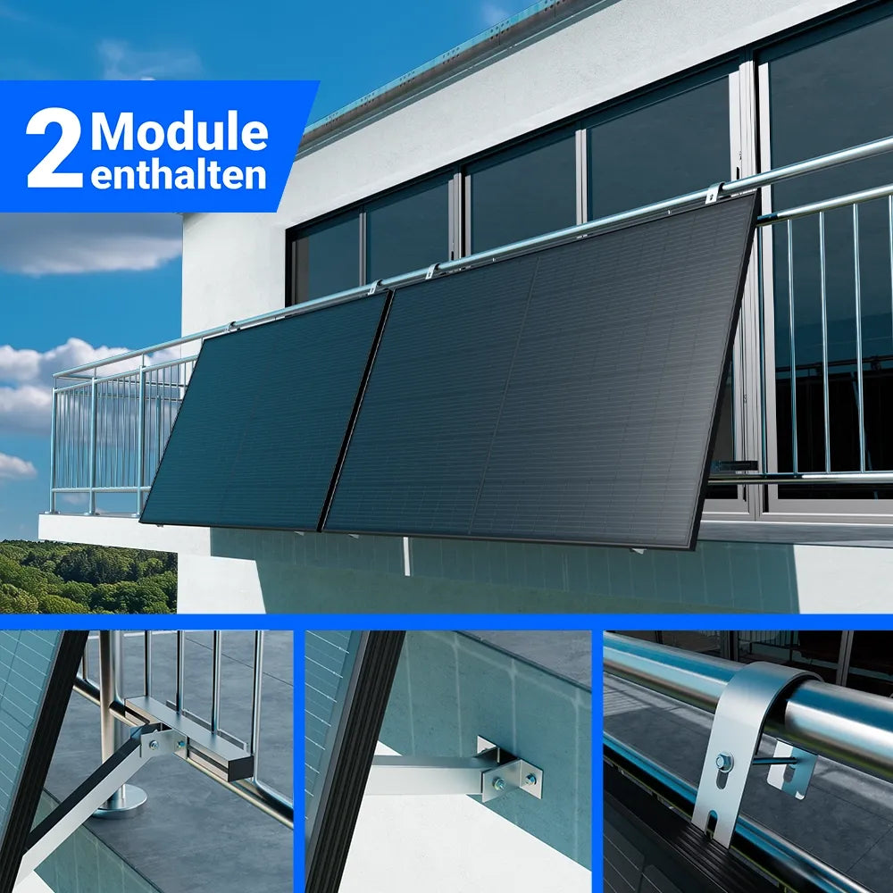 Dieses Balkonkraftwerk bietet dir eine einfache Möglichkeit, umweltfreundlichen Solarstrom zu erzeugen. Mit zwei leistungsstarken Trina Vertex S+ 460W Modulen und einem Hoymiles HMS-800W-2T Wechselrichter nutzt du Sonnenenergie effizient und nachhaltig – ideal für Balkon, Dach oder Wand.