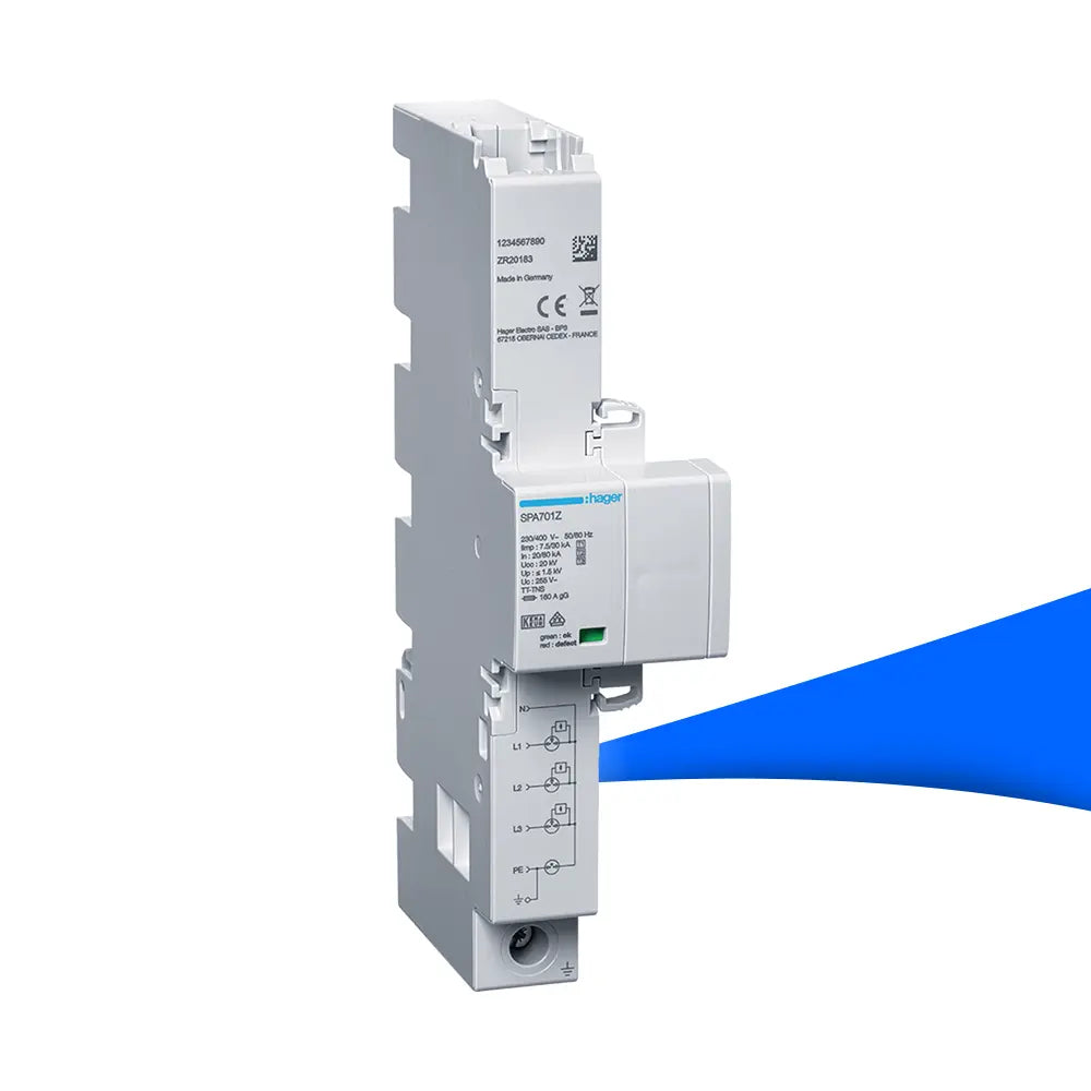 Hager SPA701Z Kombiableiter Typ 1+2+3, 4-polig, Iimp 7,5 kA – Überspannungsschutz für TT- und TN-S-Netze