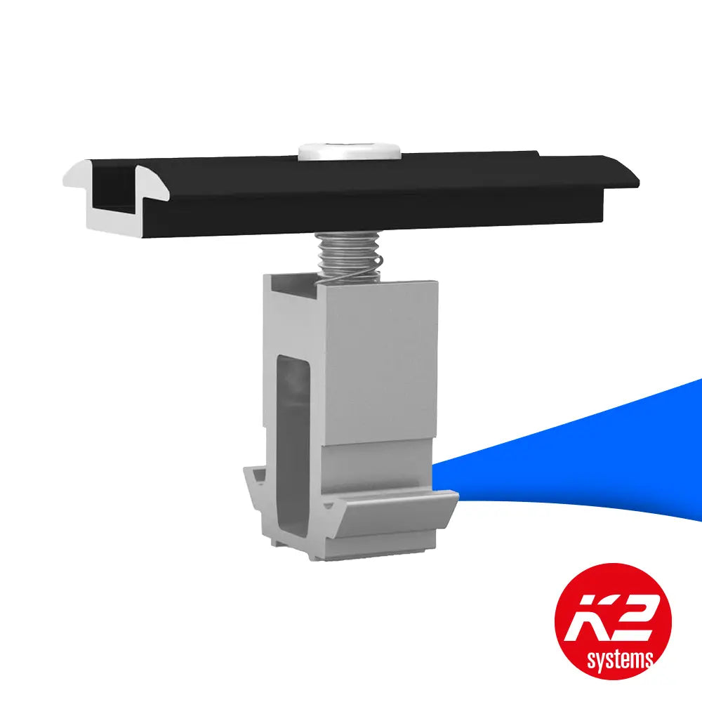 Die Dome Clamp Mittelklemme ist vielseitig einsetzbar und kompatibel mit verschiedenen Montagesystemen von K2 Systems. Sie eignet sich perfekt für unterschiedliche Dachtypen und -größen, was sie zur idealen Wahl für verschiedene Photovoltaikprojekte macht. Ob Schrägdach, Flachdach oder Freiflächenanlagen – die DomeClamp MC bietet immer eine passende Lösung.