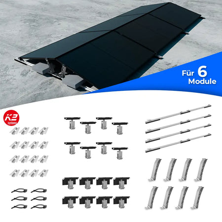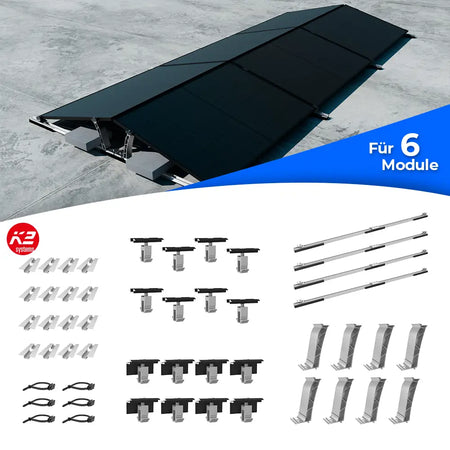 Das K2 D-Dome 6.15 Base Set wurde speziell für die Installation von Photovoltaikanlagen auf Flachdächern entwickelt. Es zeichnet sich durch eine einfache Montage und die Unterstützung von Modulbreiten zwischen 1061 und 1170 mm aus. Mit langlebigen Materialien wie Aluminium, Edelstahl und EPDM bietet das Set eine hohe Stabilität und Robustheit, ideal für flexible PV-Projekte.