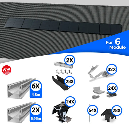 K2 Systems Quermontage Schrägdach Kreuzverbund Montageset für 6 Module
