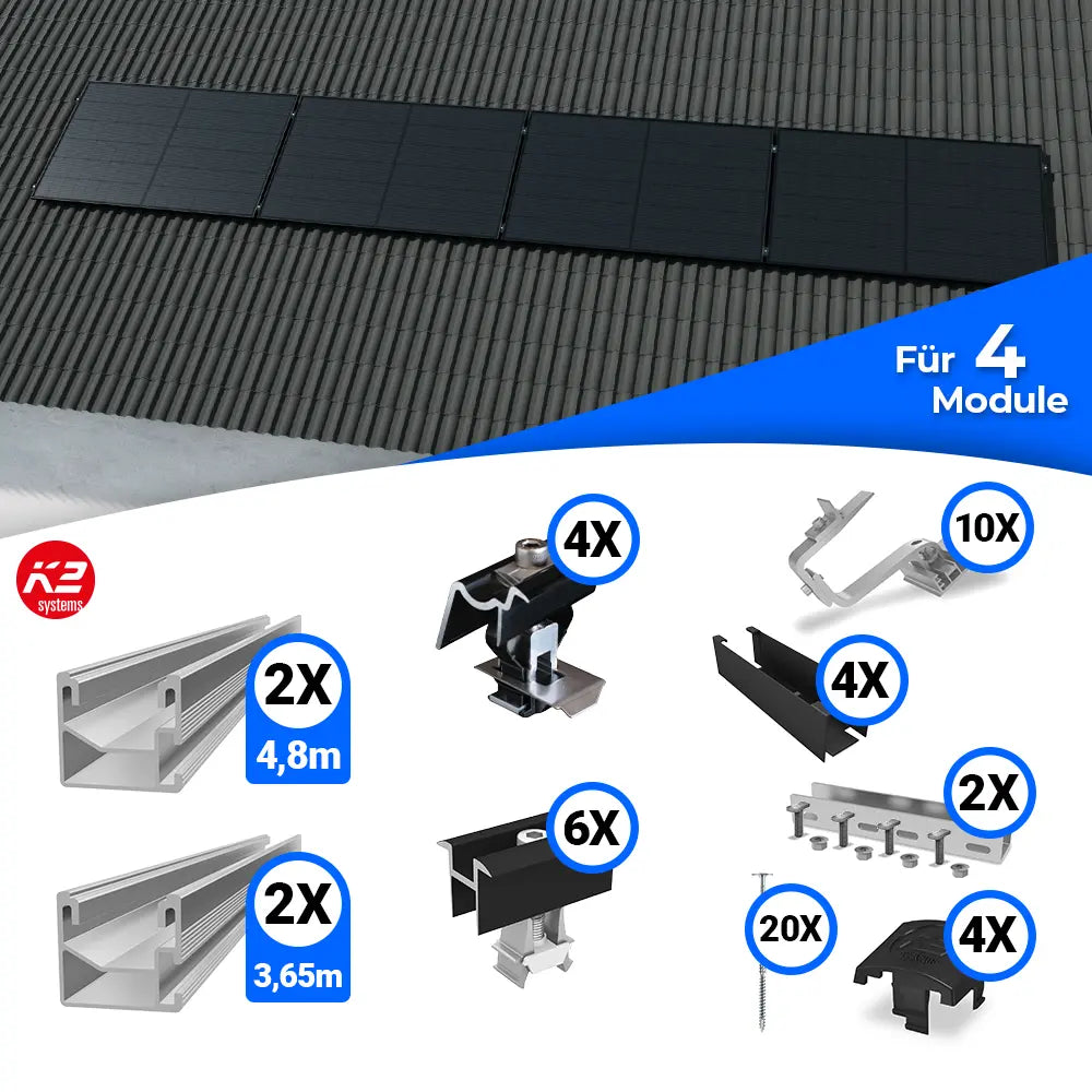 K2 Systems Quermontage Schrägdach Montageset für 4 Module
