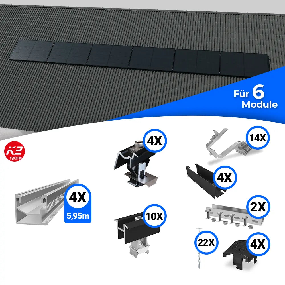 K2 Systems Quermontage Schrägdach Montageset für 6 Module