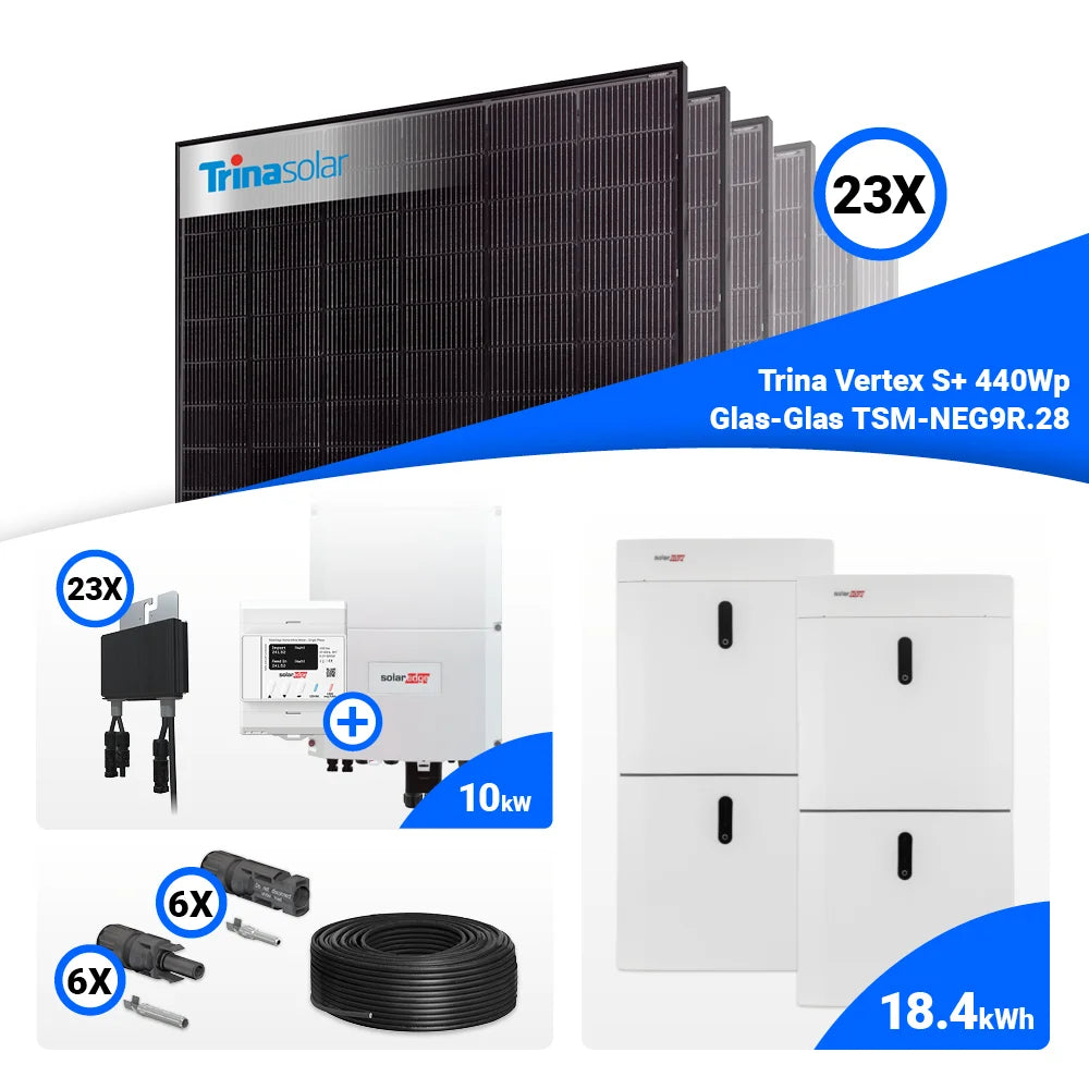 PV Komplettset 10 kWp – 23x Trina 440W Full Black Bifazial & Solaredge SE10K mit Speicheroption