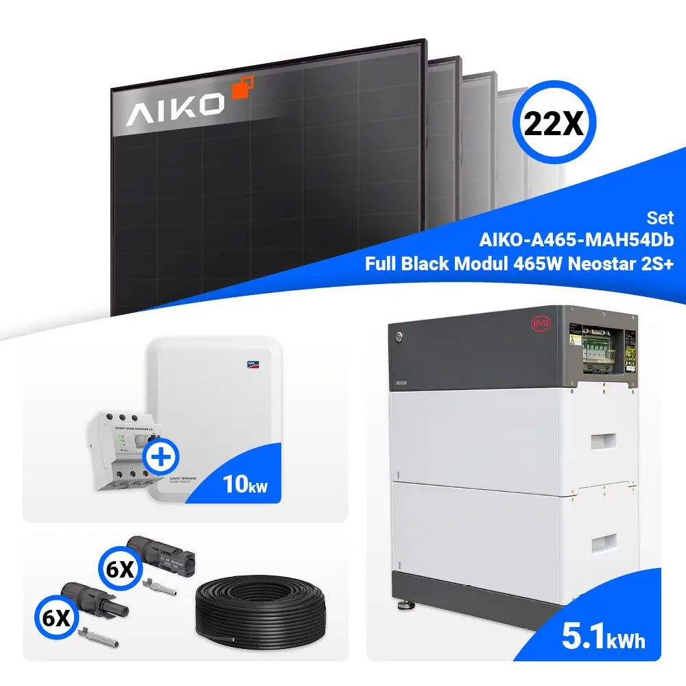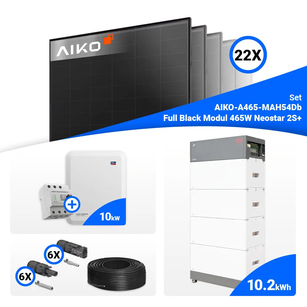 PV Komplettset 10 kWp – 22x AIKO 465W Full Black & SMA STP10.0-3SE-40 mit Speicheroption