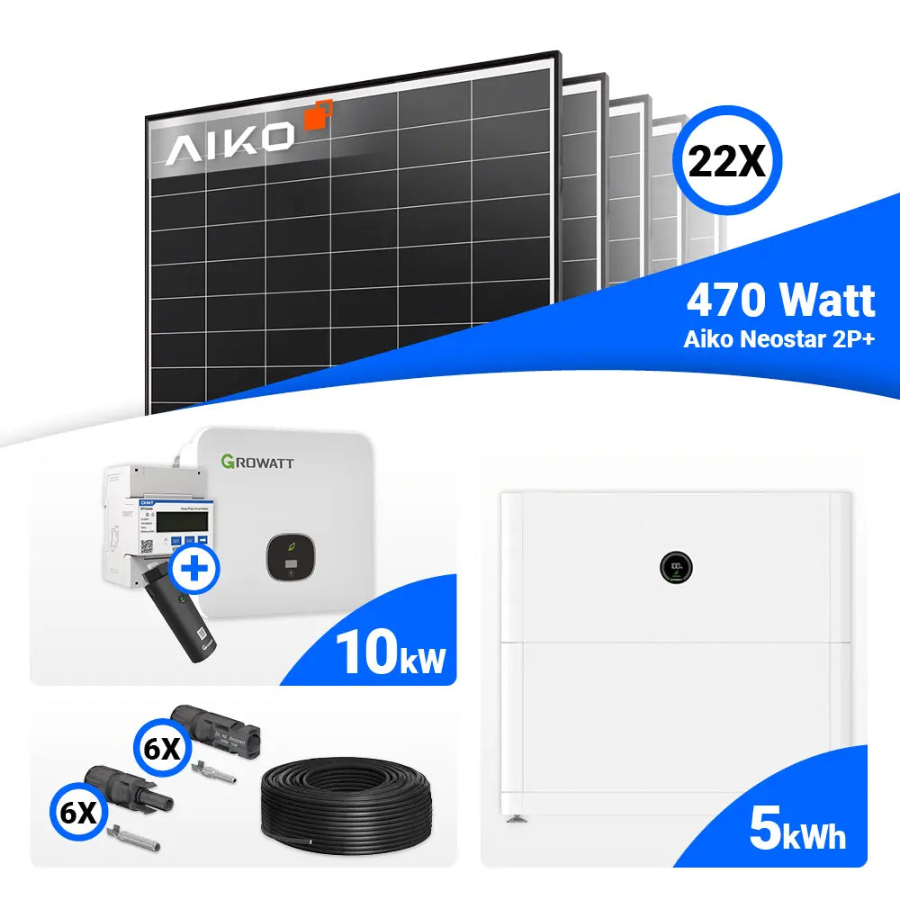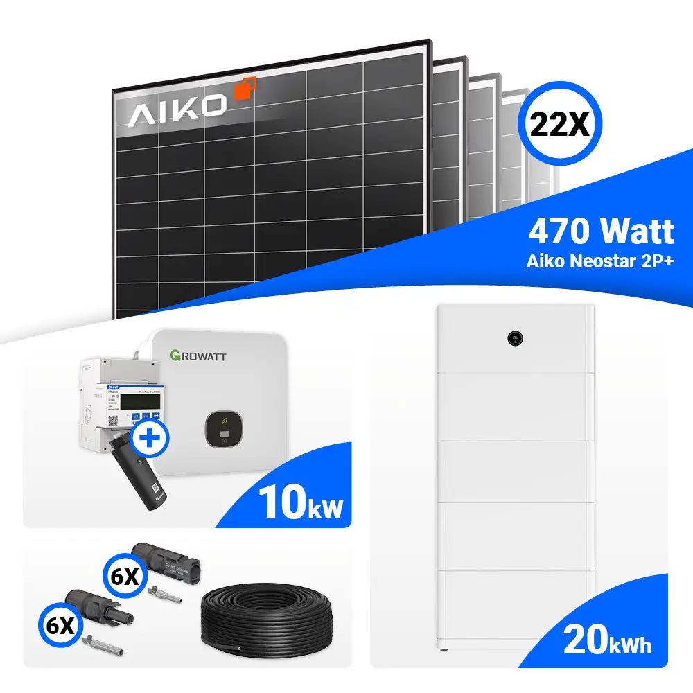 PV Komplettset 10 kWp – 22x AIKO 470W Black Frame & Growatt MOD 10KTL3-XH BP mit Speicheroption