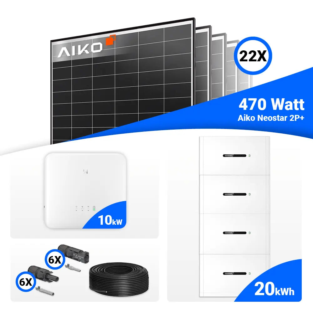 PV Komplettset 10 kWp – 22x AIKO 470W Black Frame & GoodWe GW10K-ET-20 mit Speicheroption