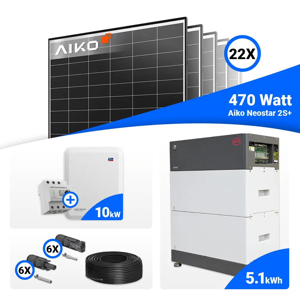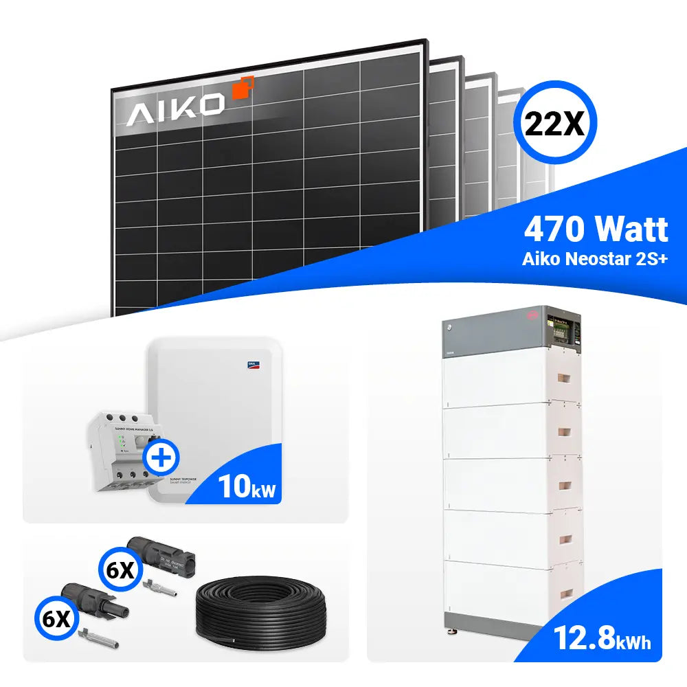 PV Komplettset 10 kWp – 22x AIKO 470W Black Frame & SMA STP10.0-3SE-40 mit Speicheroption