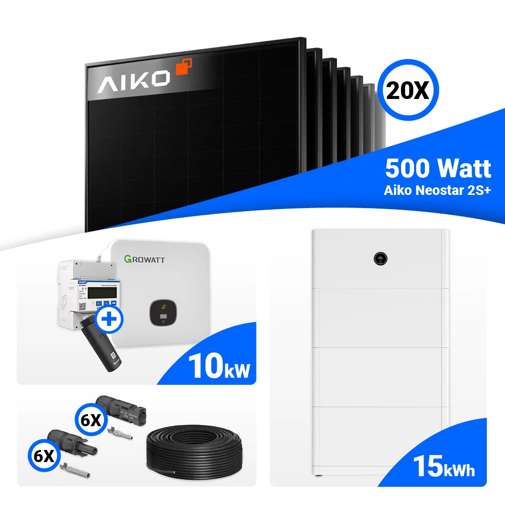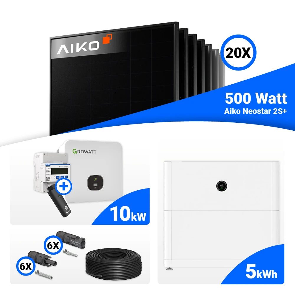 PV Komplettset 10 kWp – 20x AIKO 500W Full Black & Growatt MOD 10KTL3-XH BP mit Speicheroption