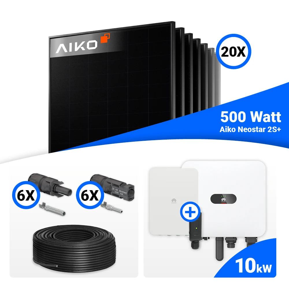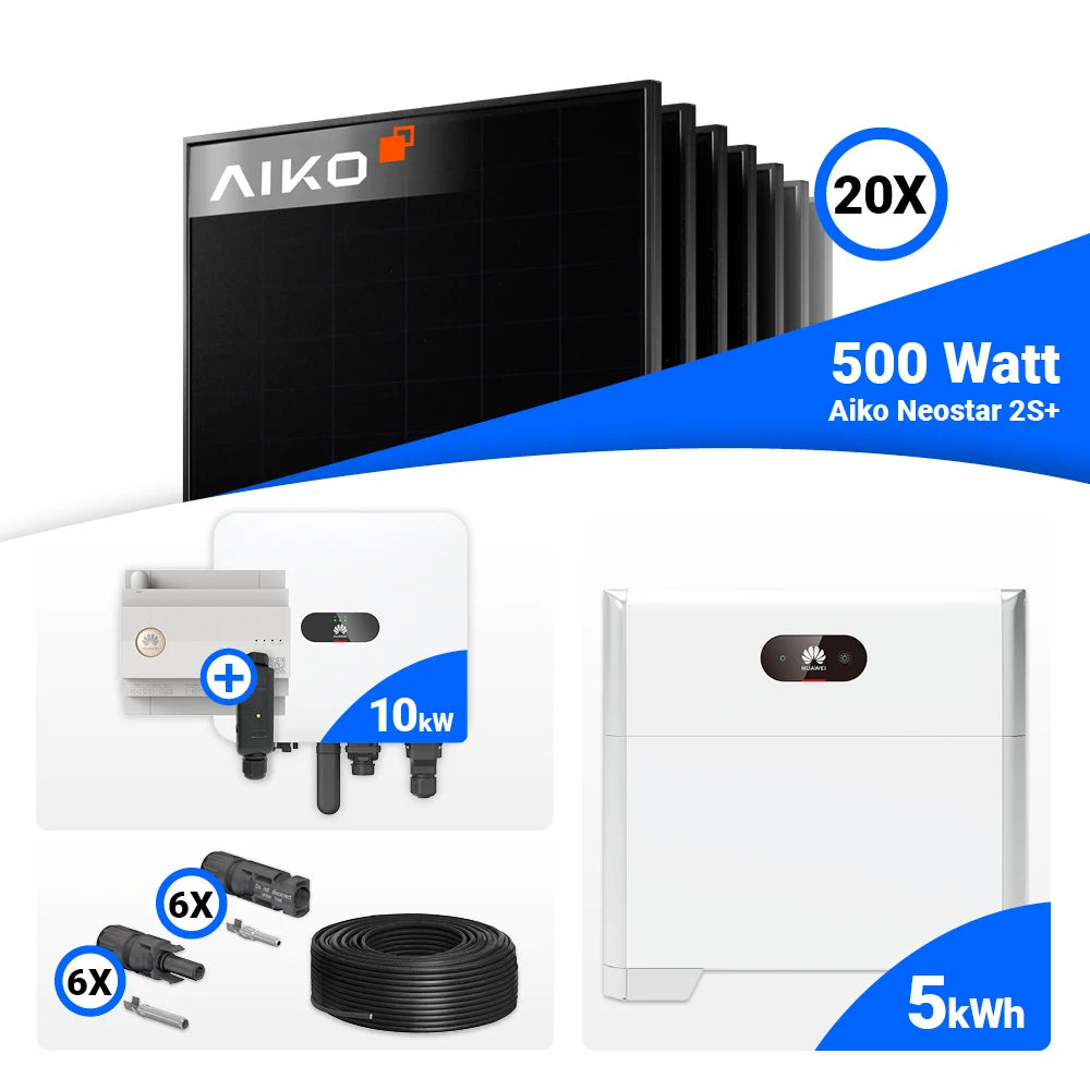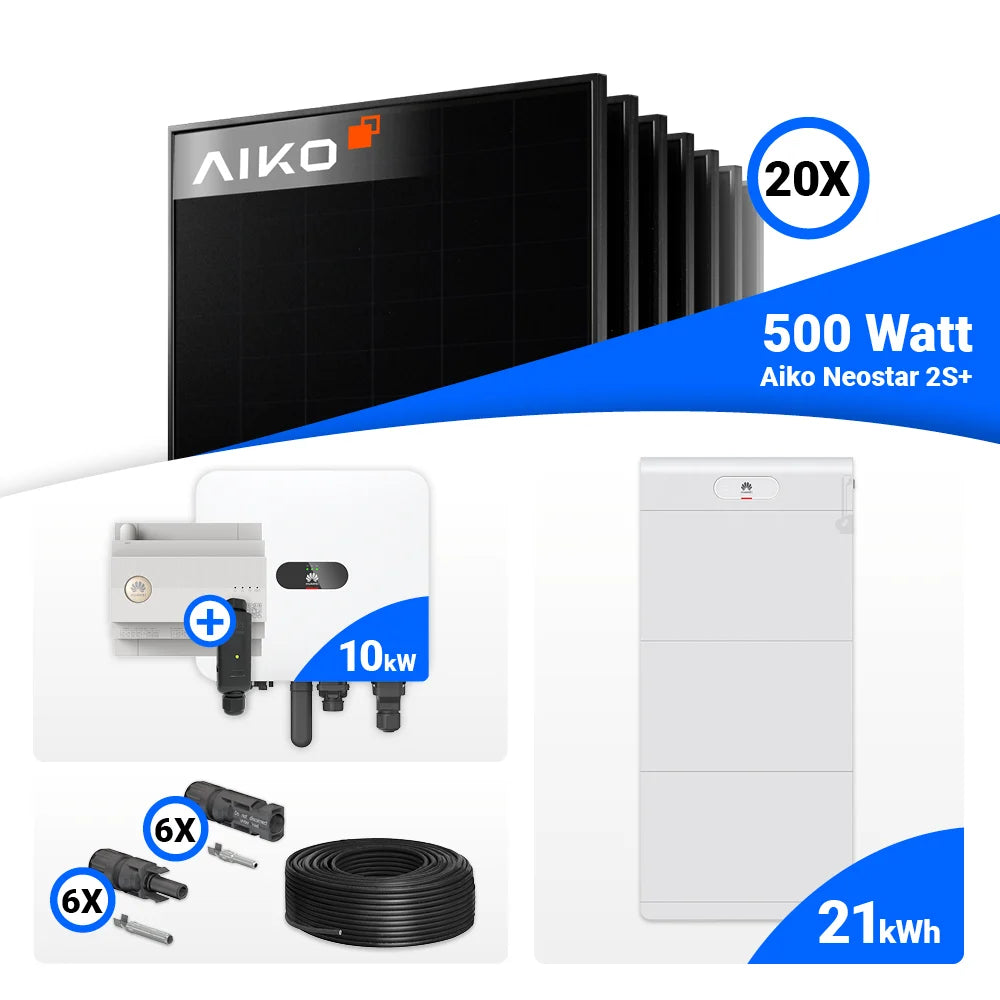 PV Komplettset 10 kWp – 20x AIKO 500W Full Black & Huawei MAP0 mit Speicheroption