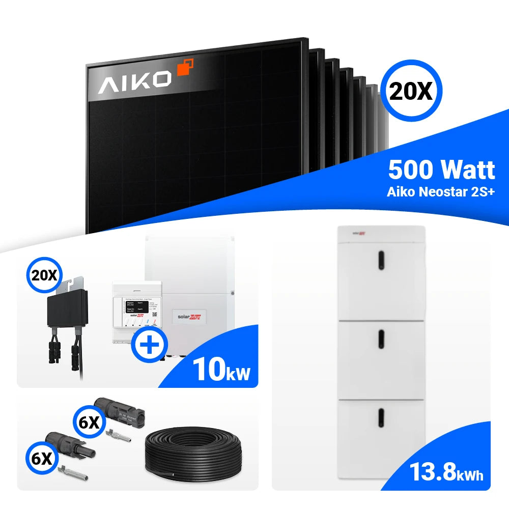 PV Komplettset 10 kWp – 20x AIKO 500W Full Black & Solaredge SE10K mit Speicheroption