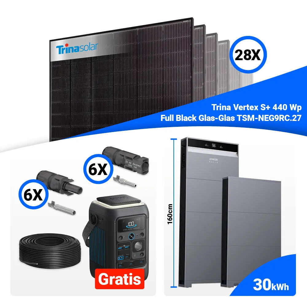 PV Komplettset 12 kWp – 28x Trina 440W Full Black Bifazial & Anker X1-H12K-T mit Speicheroption