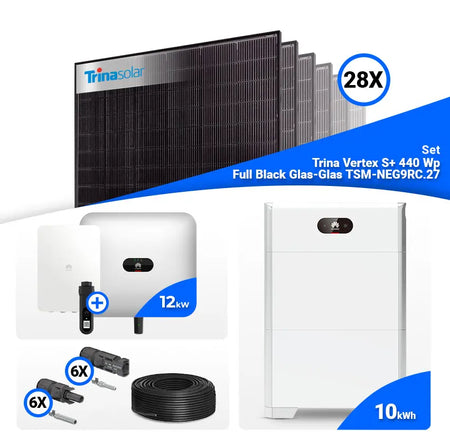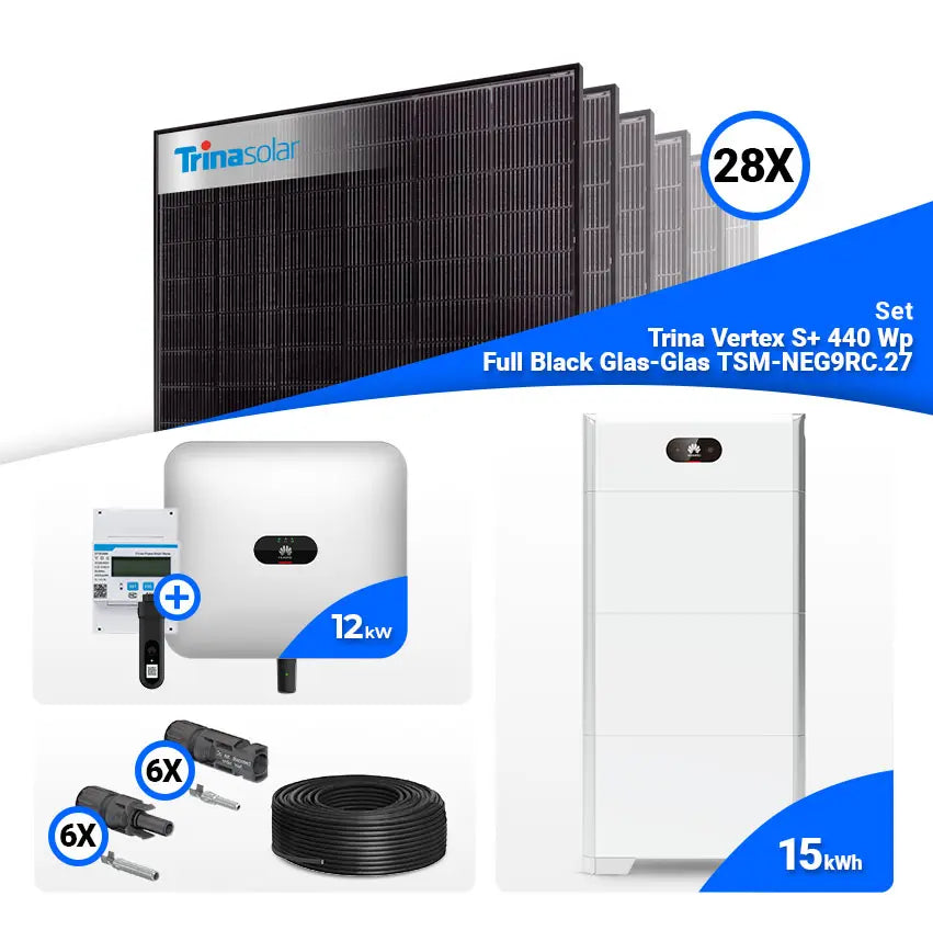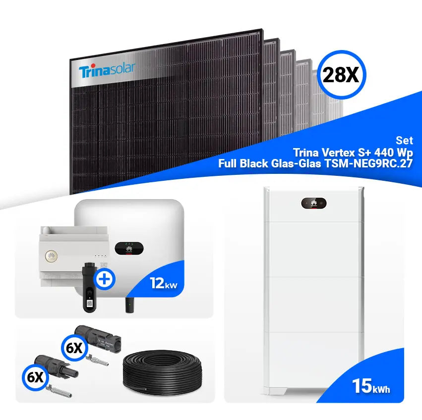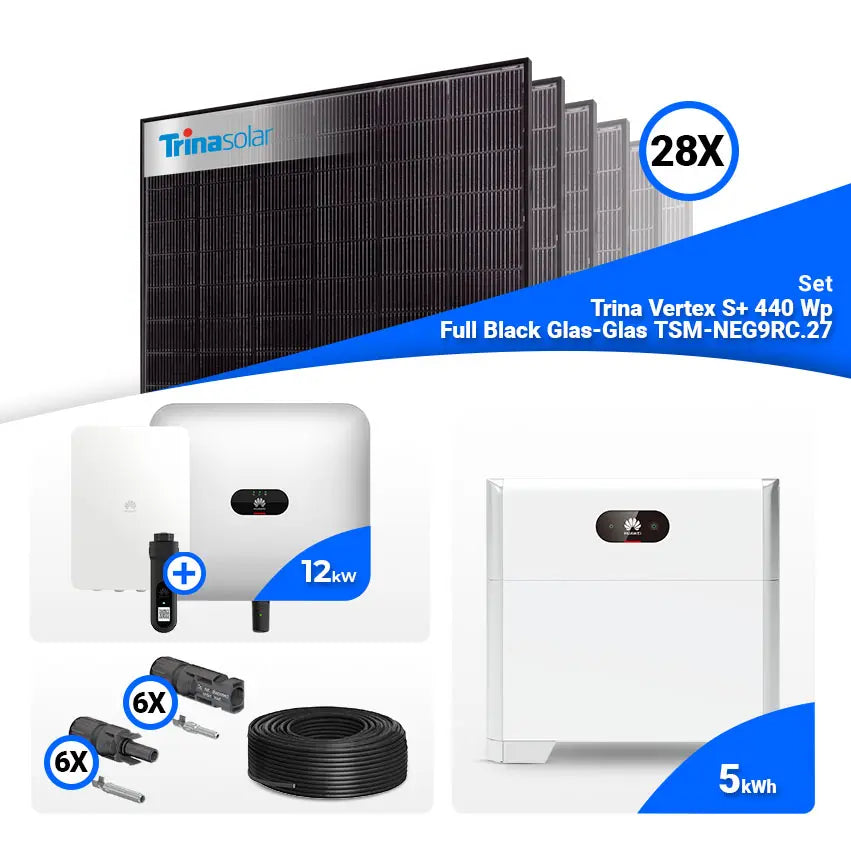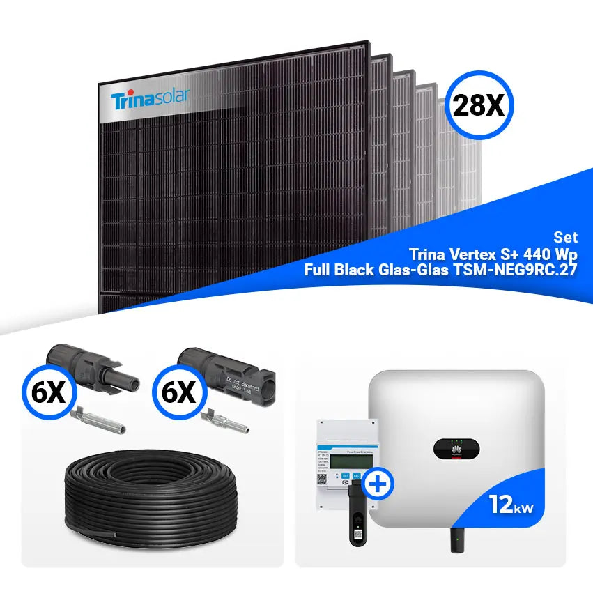 PV Komplettset 12 kWp – 28x Trina 440W Full Black Bifazial & Huawei SUN2000-12K-MB0 mit Speicheroption