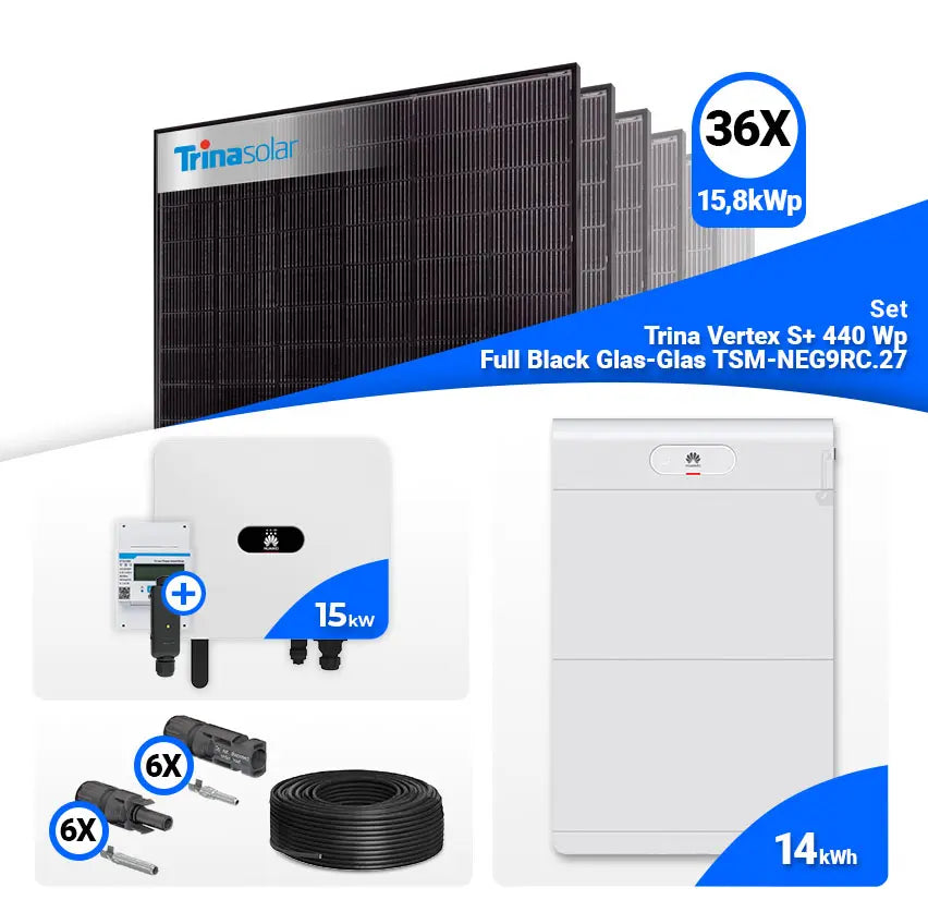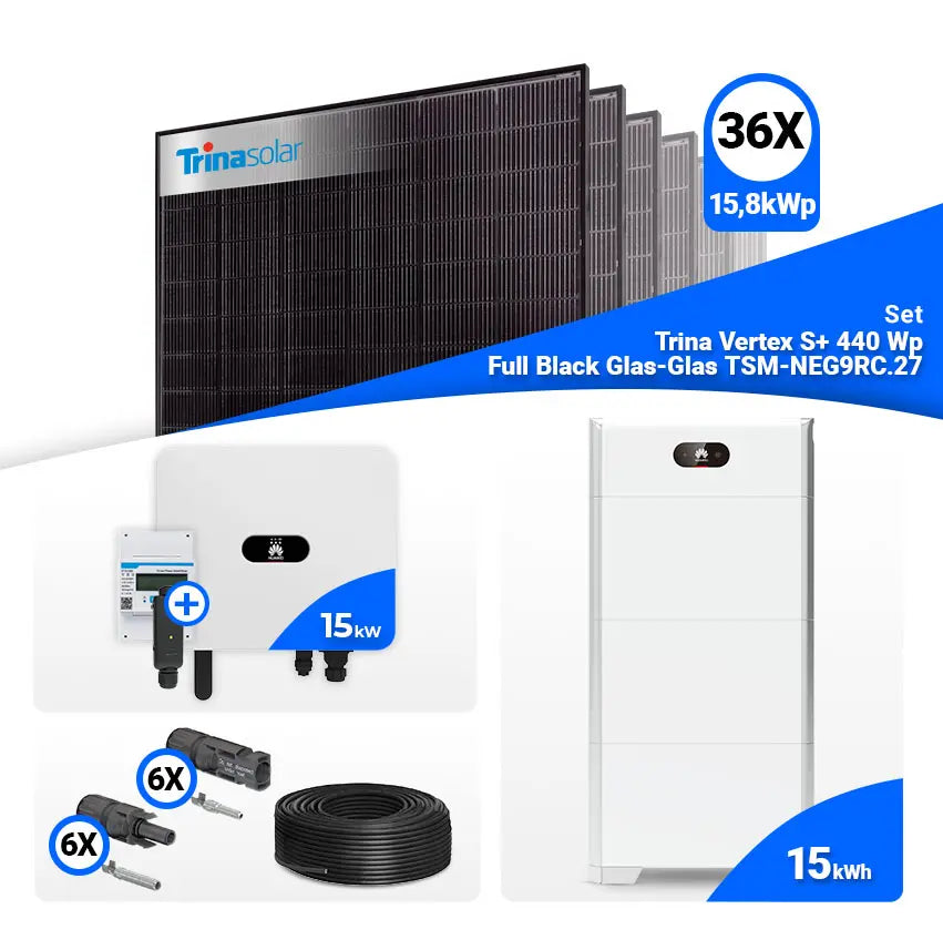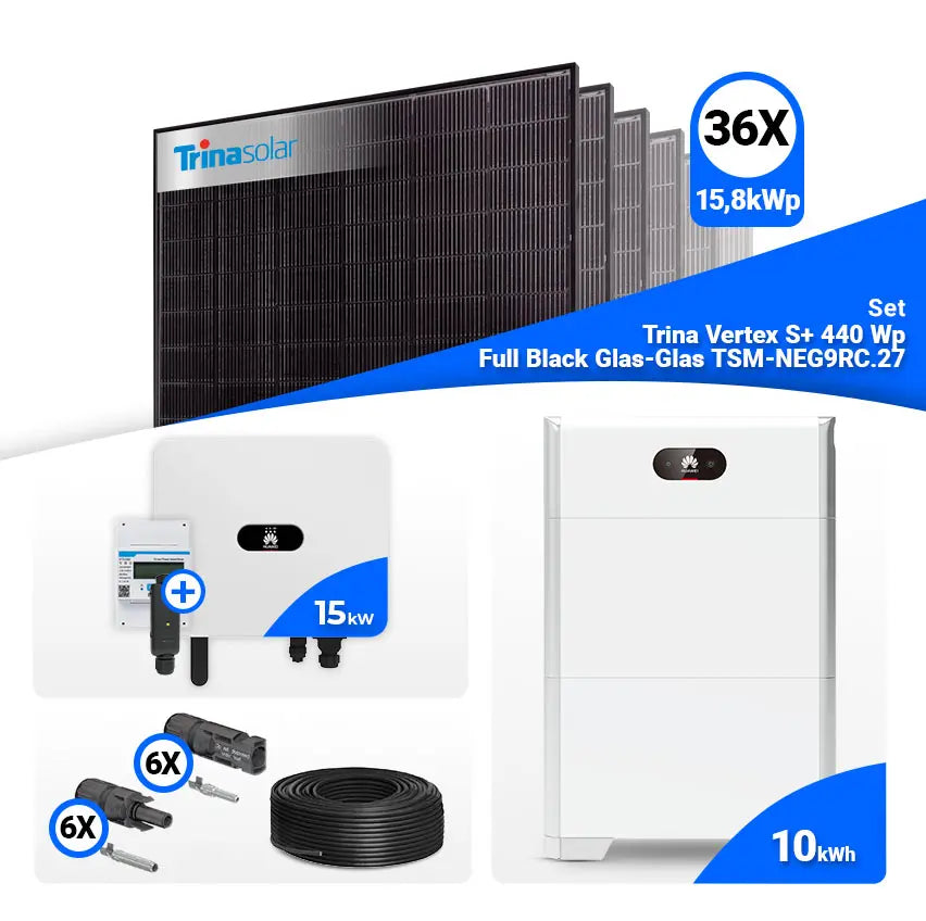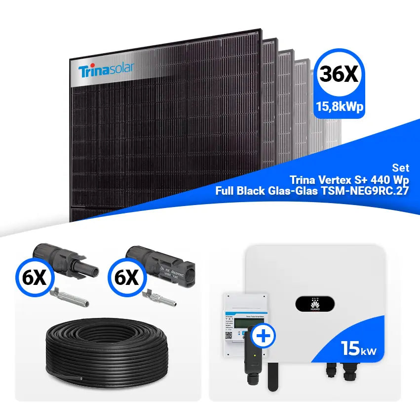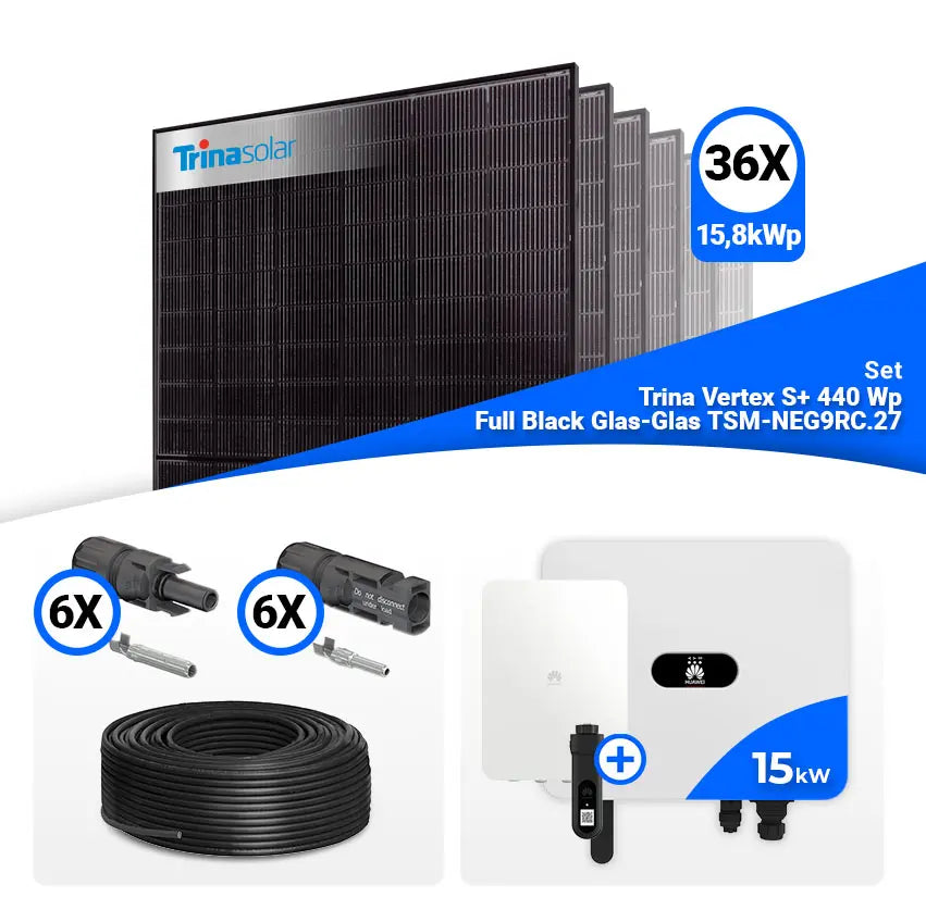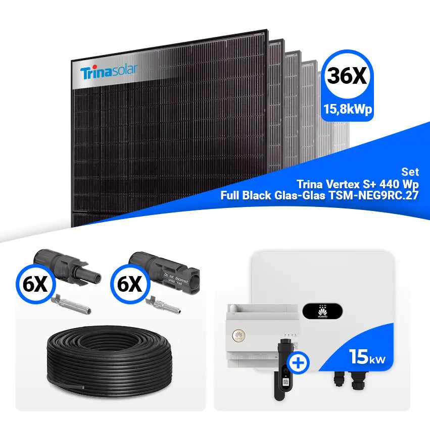 PV Komplettset 15 kWp – 36x Trina 440W Full Black Bifazial & Huawei SUN2000-15K-MB0 mit Speicheroption