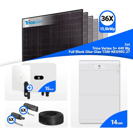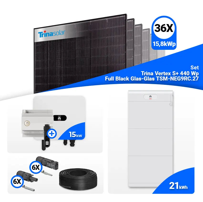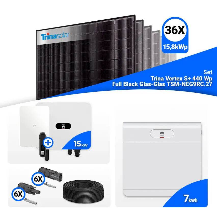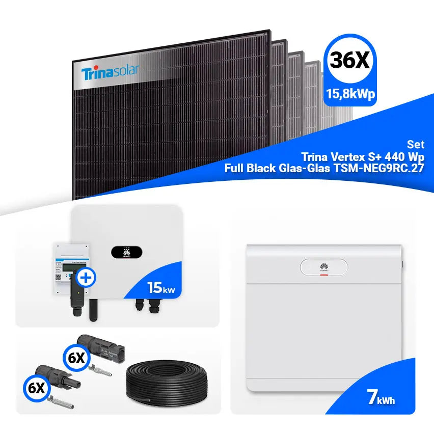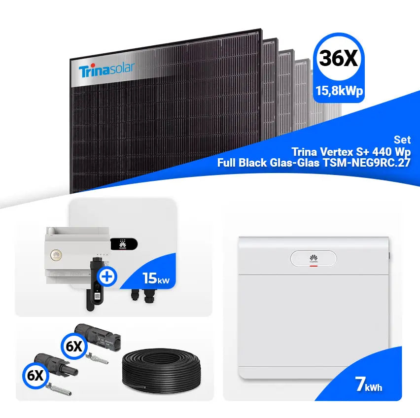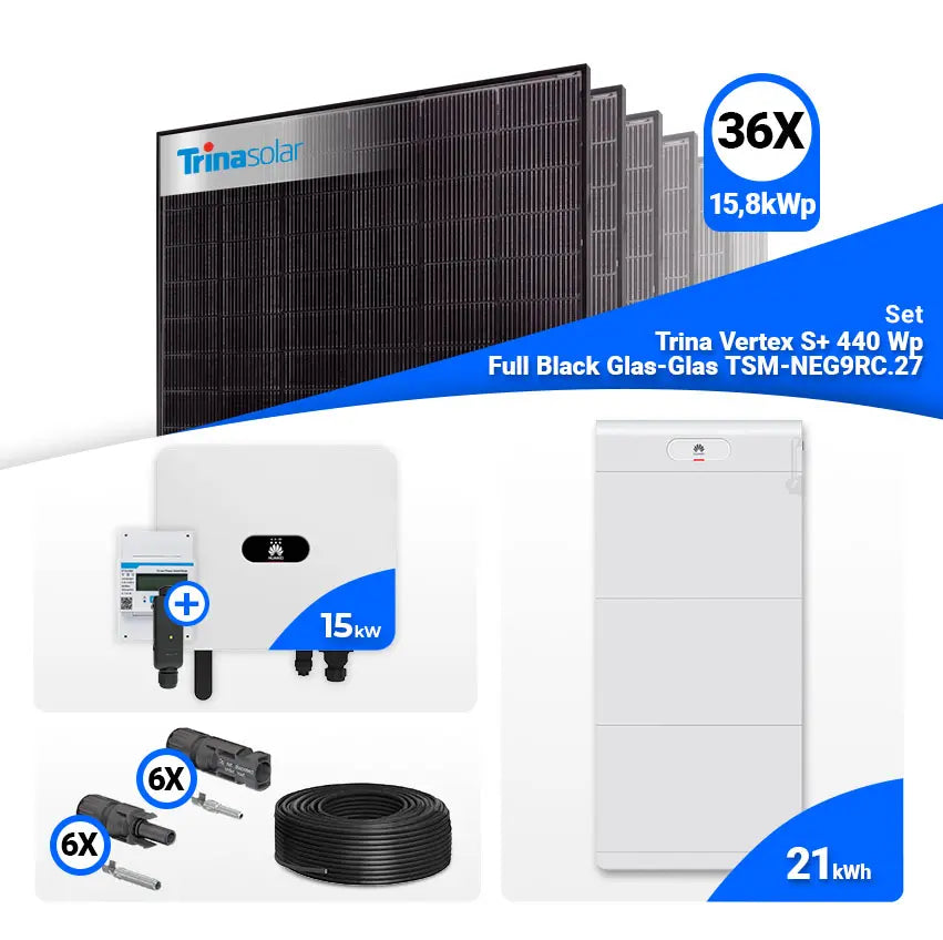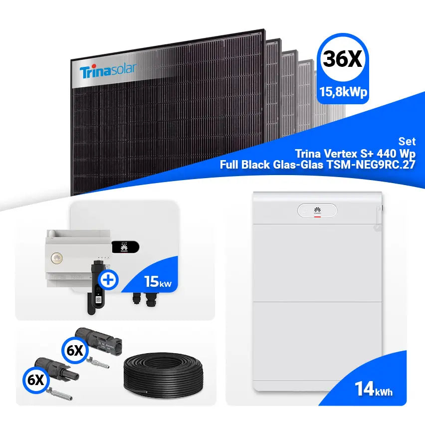 PV Komplettset 15 kWp – 36x Trina 440W Full Black Bifazial & Huawei SUN2000-15K-MB0 mit Speicheroption