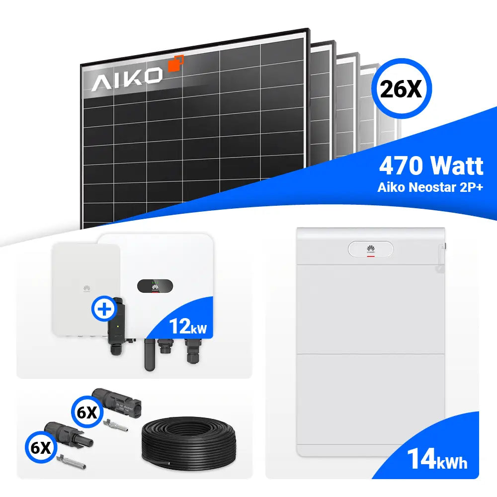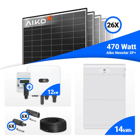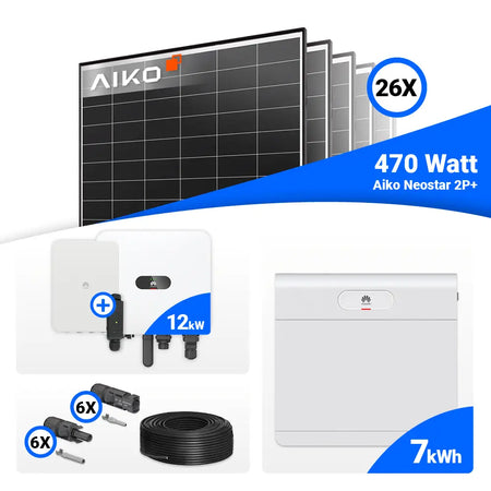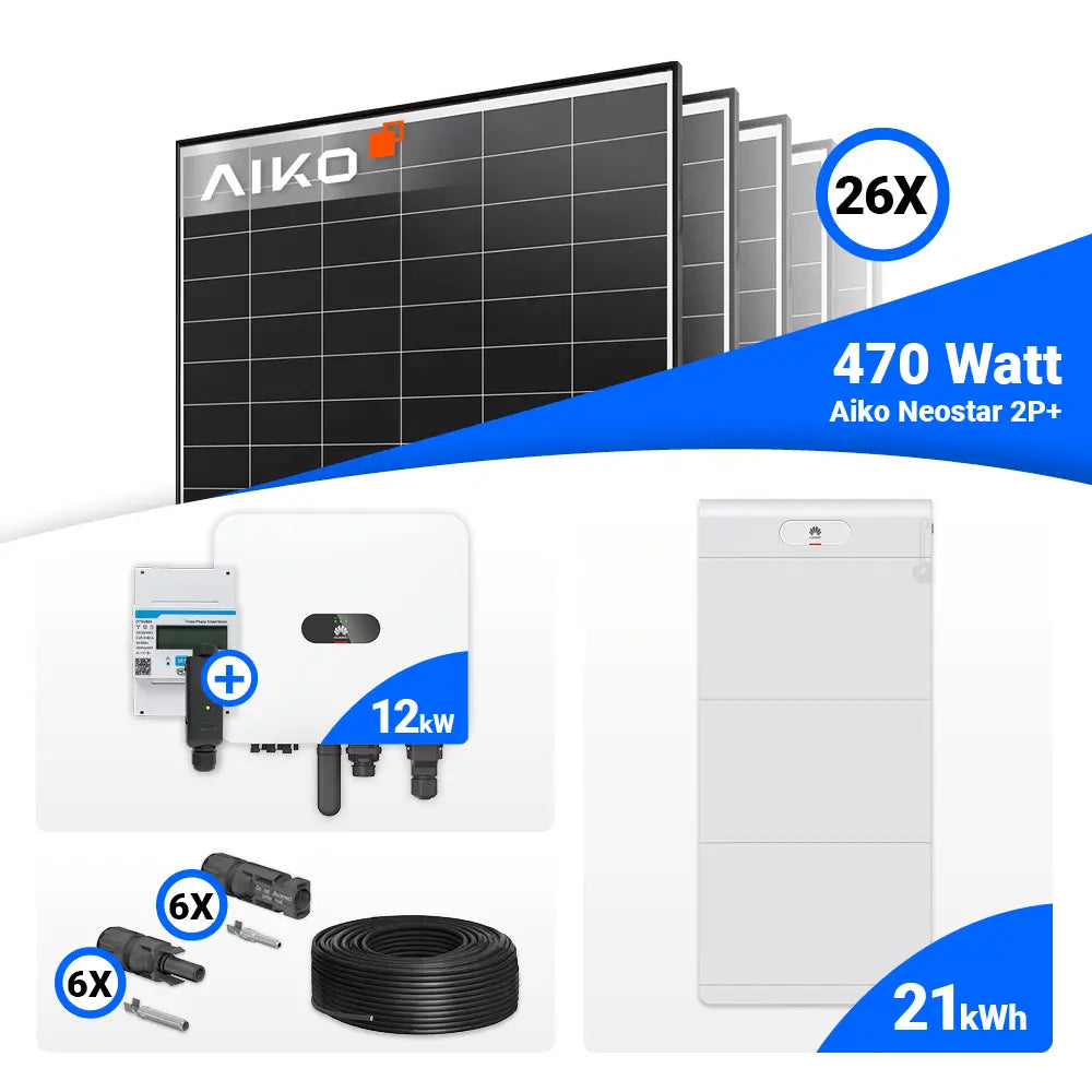PV Komplettset 12 kWp – 26x AIKO 470W Black Frame & Huawei MAP0 mit Speicheroption