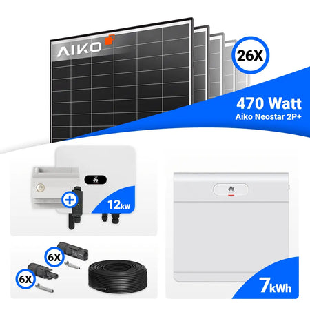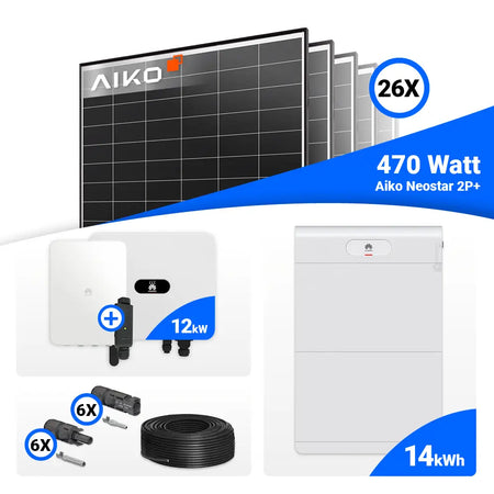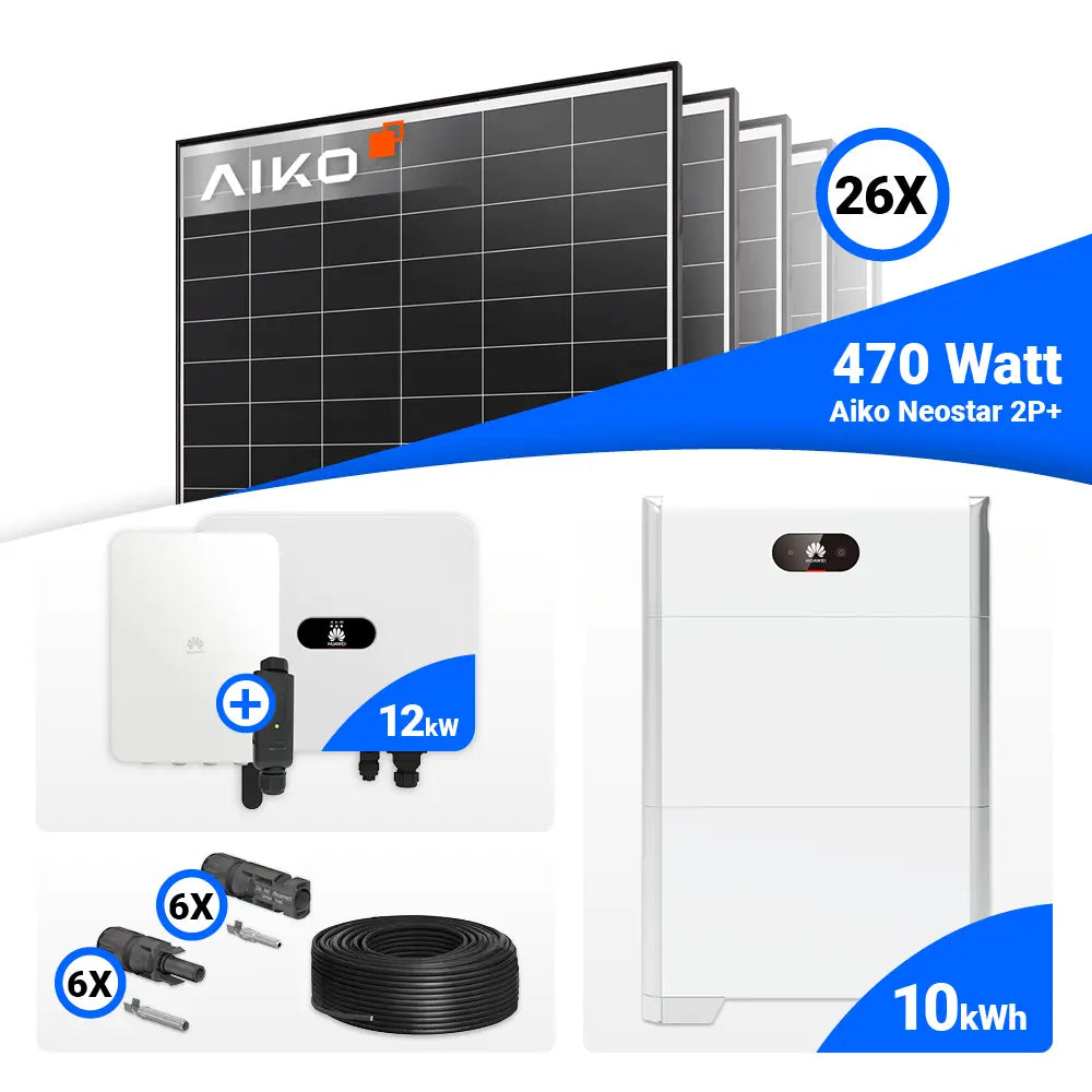 PV Komplettset 12 kWp – 26x AIKO 470W Black Frame & Huawei SUN2000-12K-MB0 mit Speicheroption