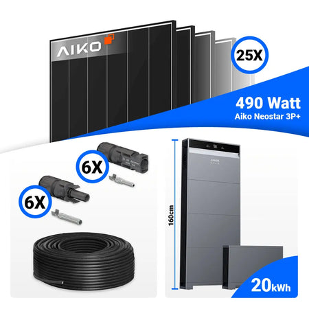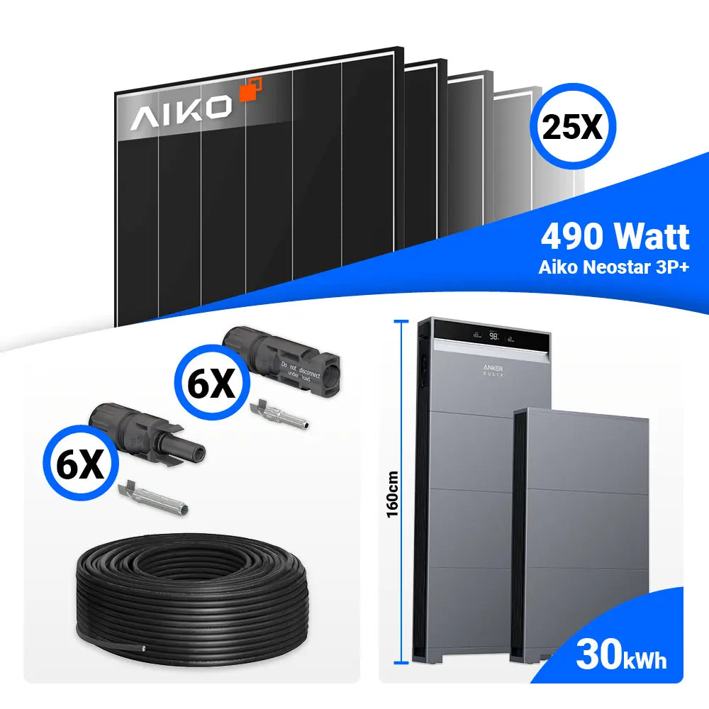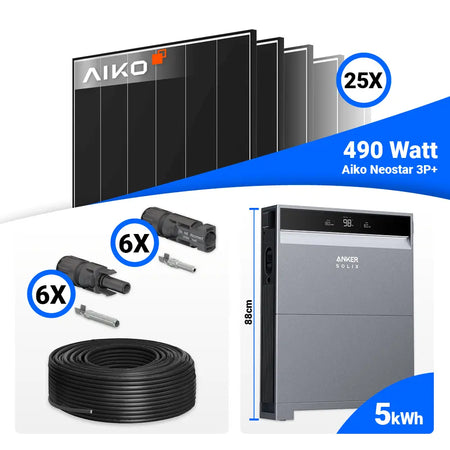 PV Komplettset 12 kWp – 25x AIKO 490W Black Frame & Anker X1-H12K-T mit Speicheroption