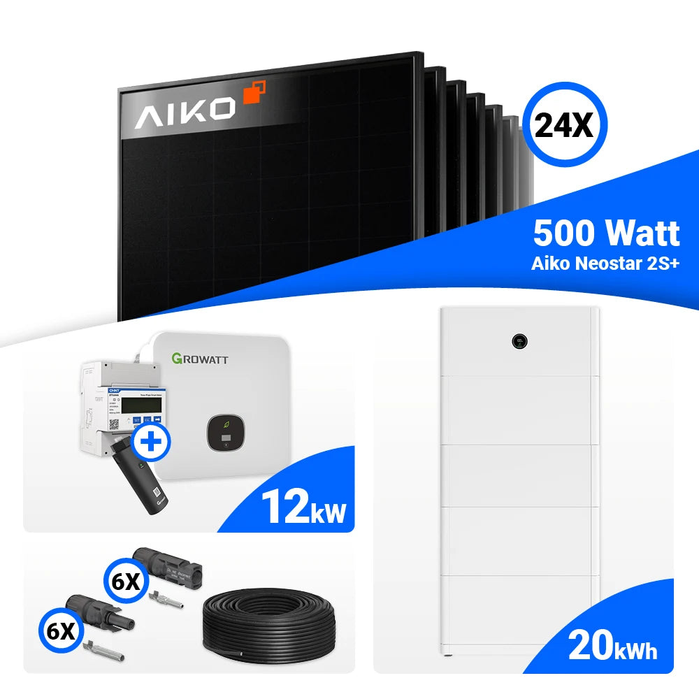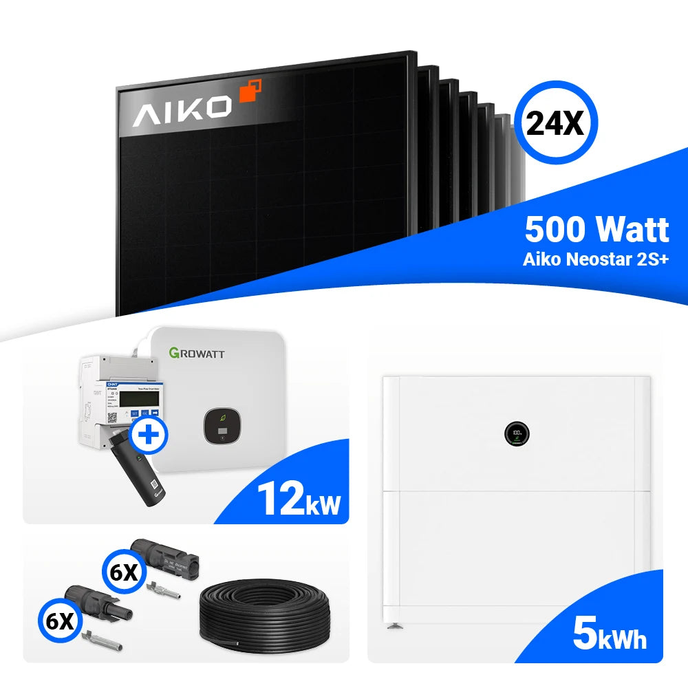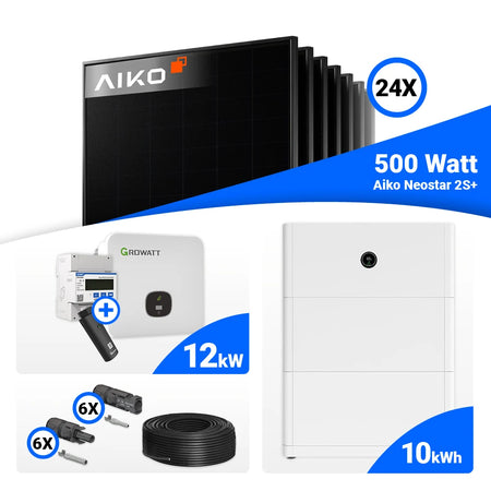 PV Komplettset 12 kWp – 24x AIKO 500W Full Black & Growatt MOD 12KTL3-HU mit Speicheroption