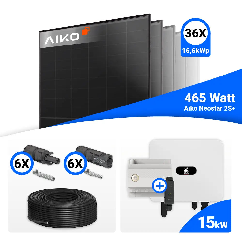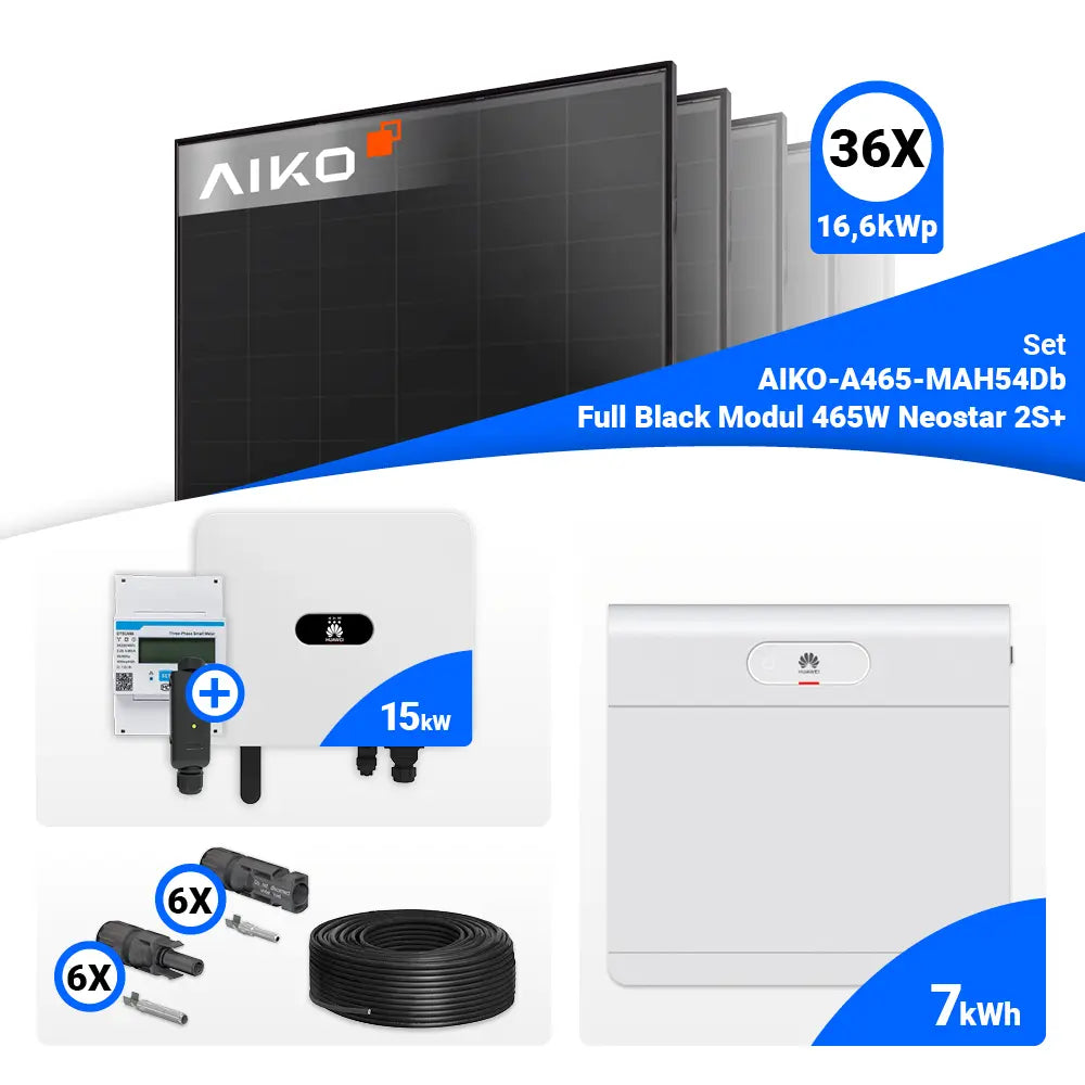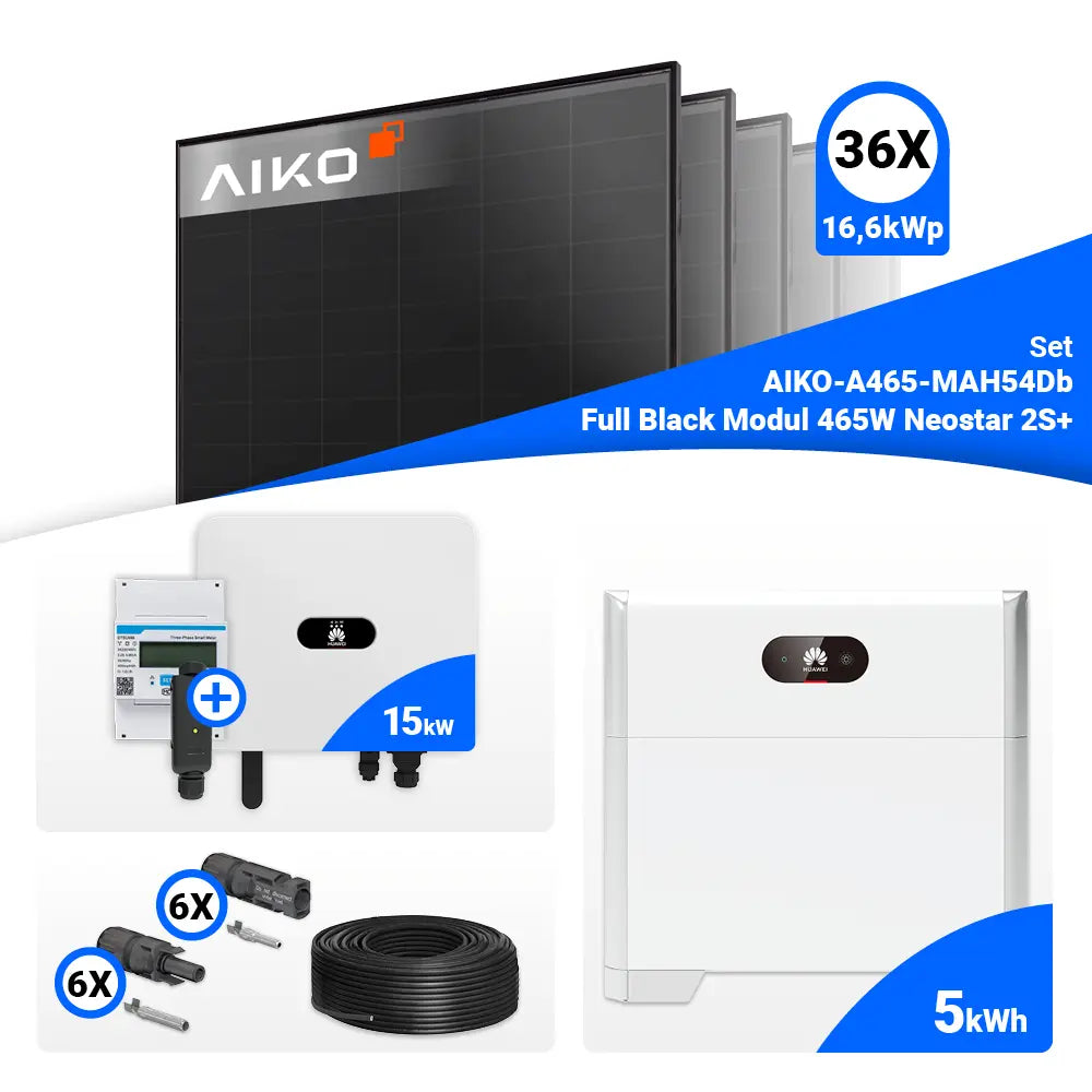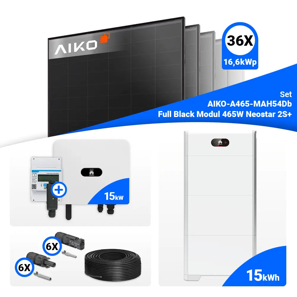PV Komplettset 15 kWp – 36x AIKO 465W Full Black & Huawei SUN2000-15K-MB0 mit Speicheroption