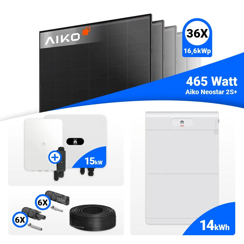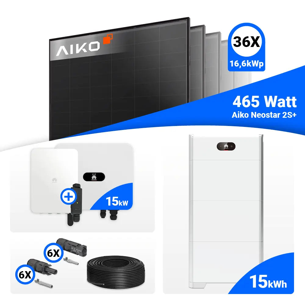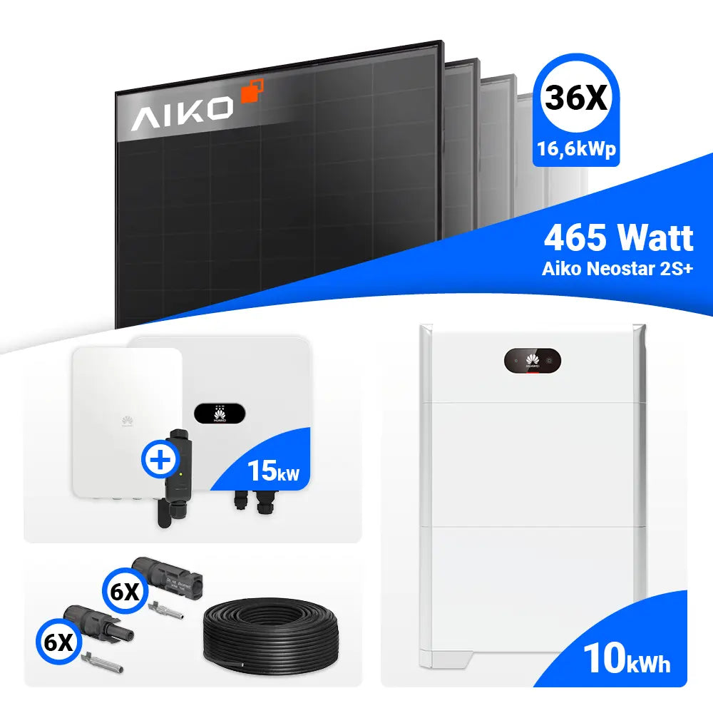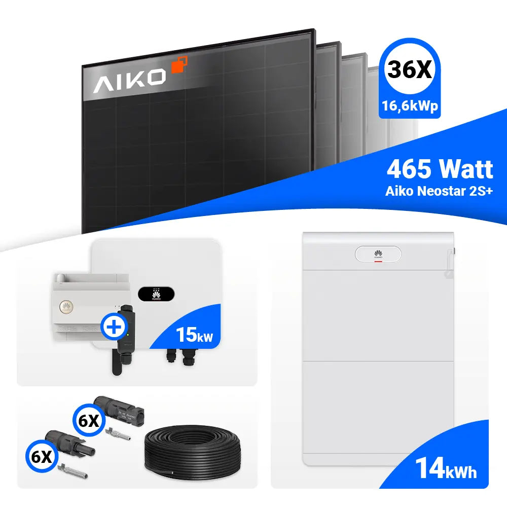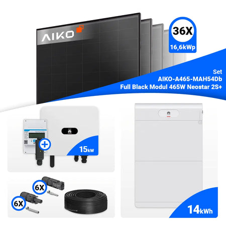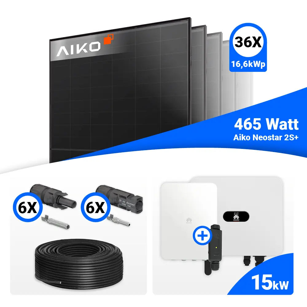 PV Komplettset 15 kWp – 36x AIKO 465W Full Black & Huawei SUN2000-15K-MB0 mit Speicheroption