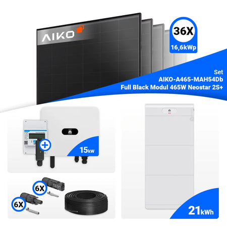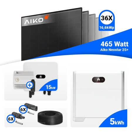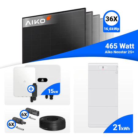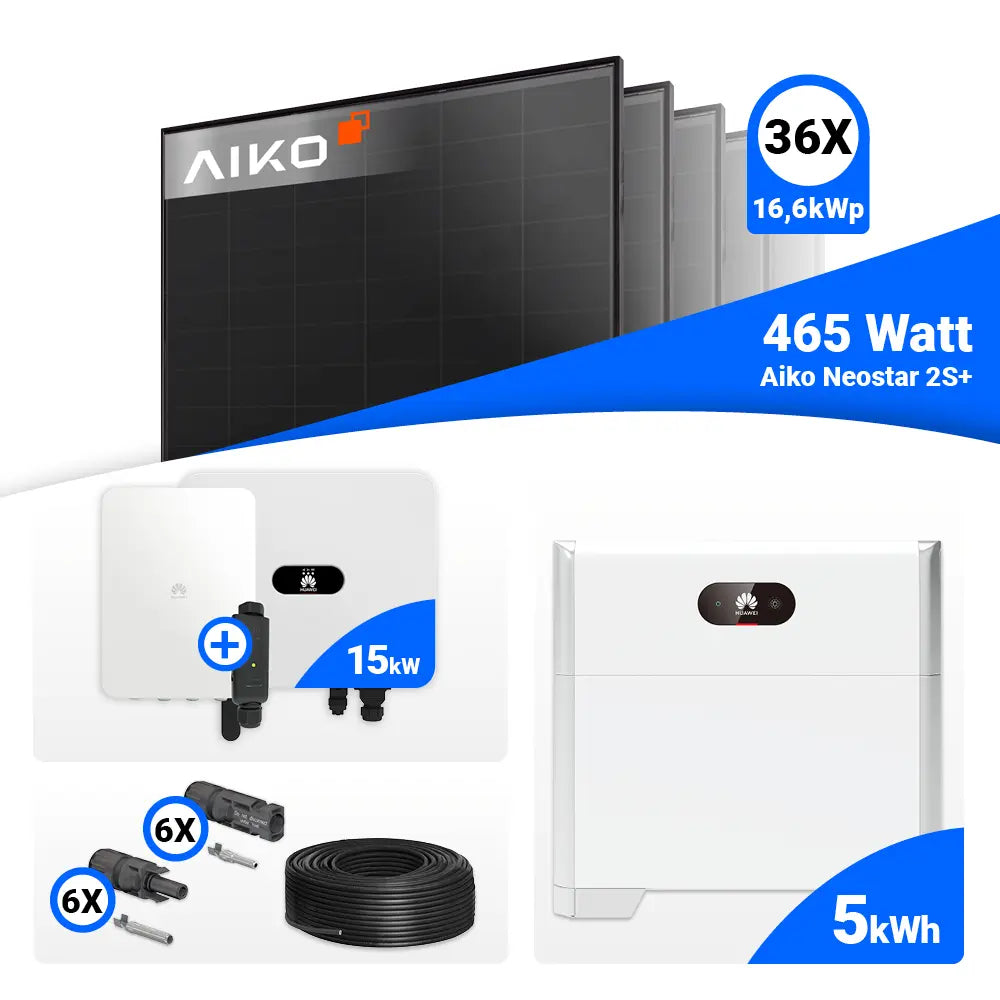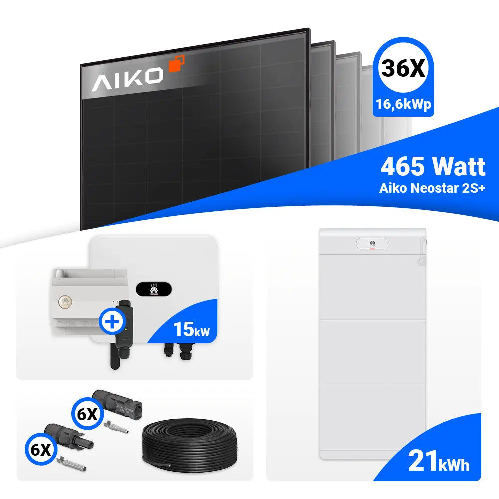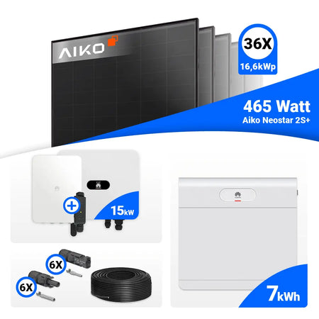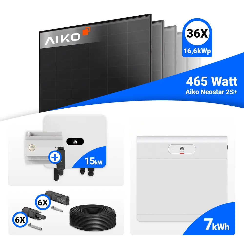 PV Komplettset 15 kWp – 36x AIKO 465W Full Black & Huawei SUN2000-15K-MB0 mit Speicheroption