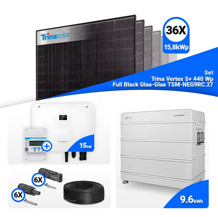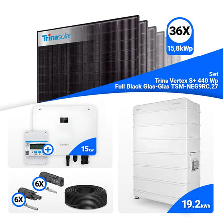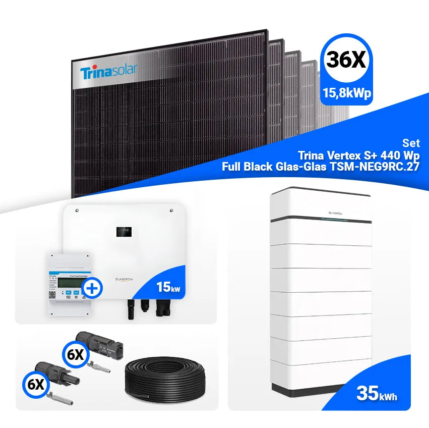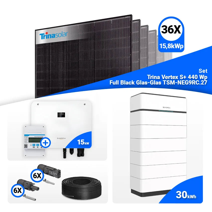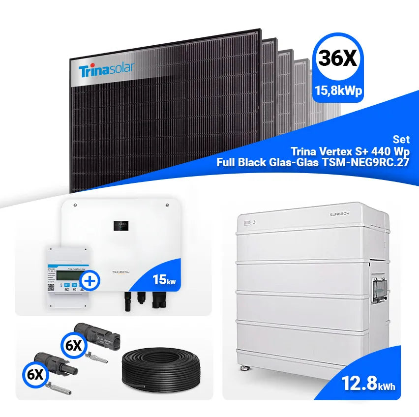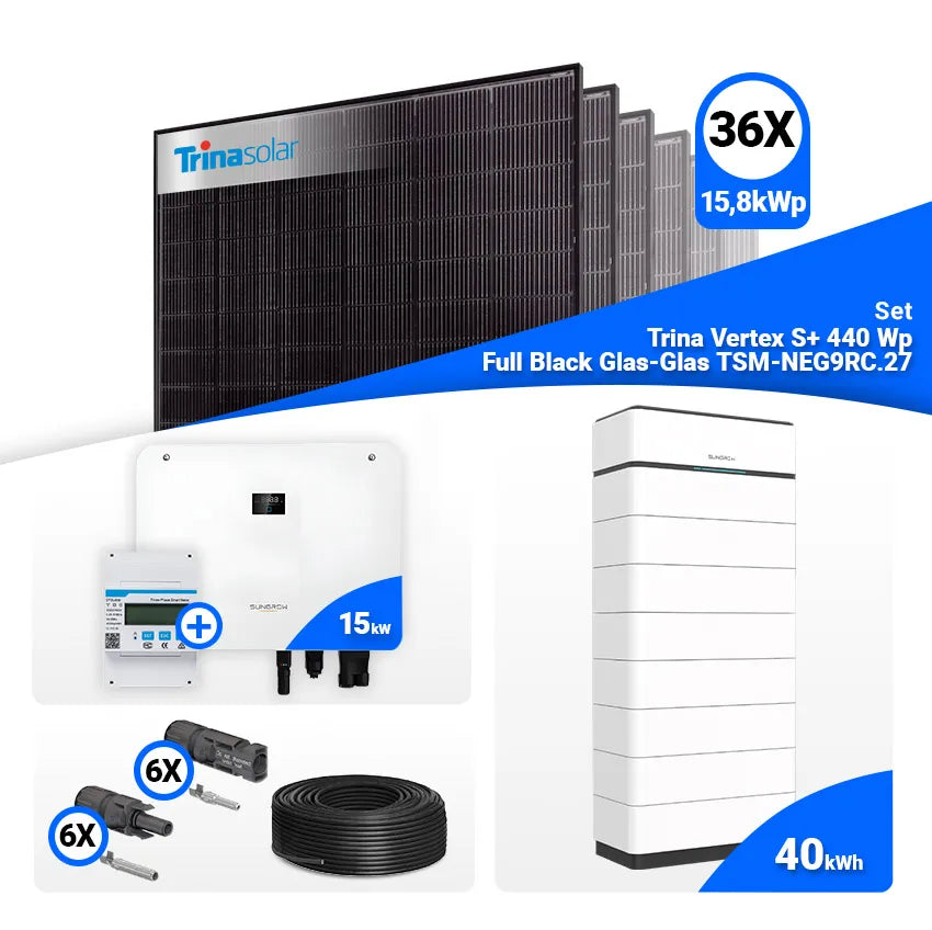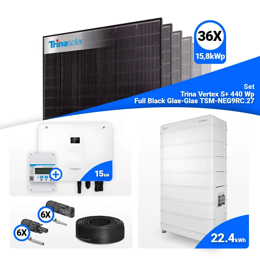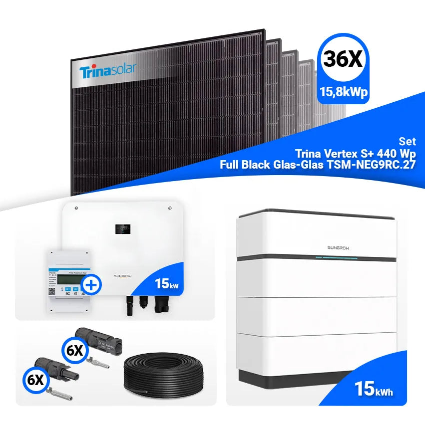 PV Komplettset 15 kWp – 36x Trina 440W Full Black Bifazial & Sungrow Hybrid SH15T mit Speicheroption