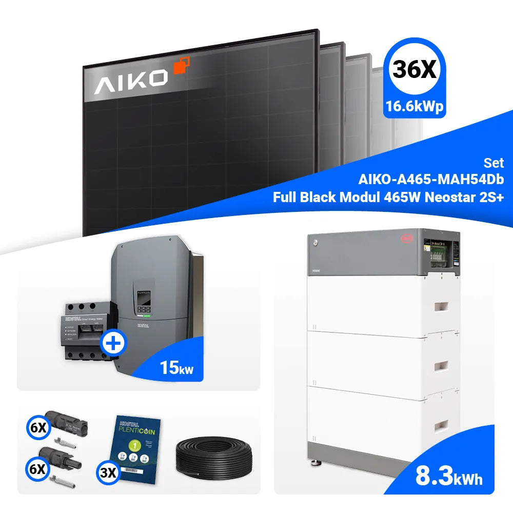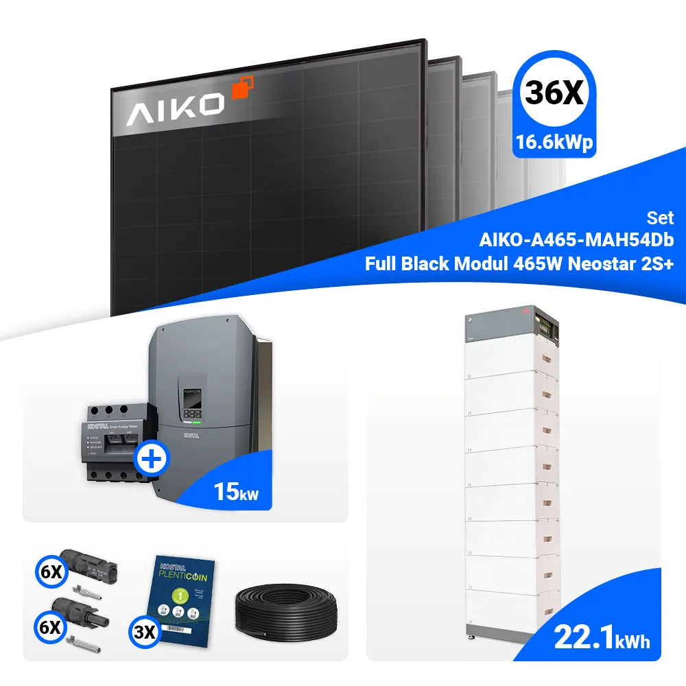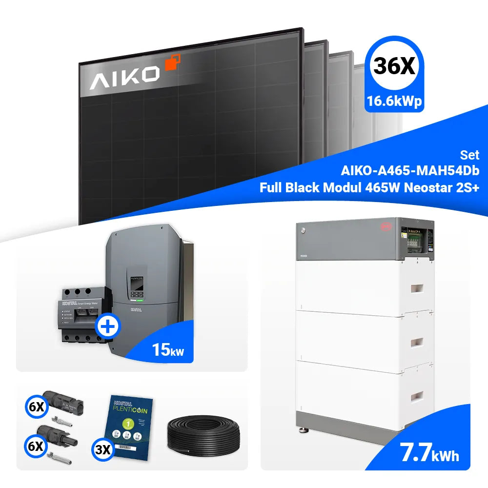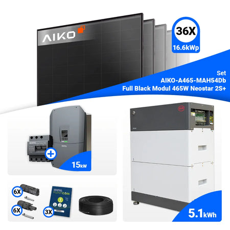 PV Komplettset 15 kWp – 36x AIKO 465W Full Black & Kostal G3 L Plenticore mit Speicheroption
