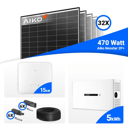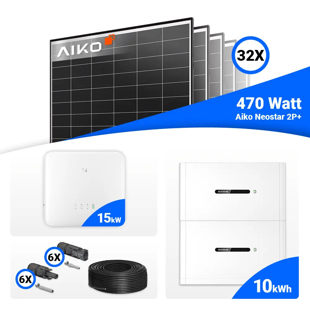 PV Komplettset 15 kWp – 32x AIKO 470W Black Frame & GoodWe GW15K-ET-20 mit Speicheroption