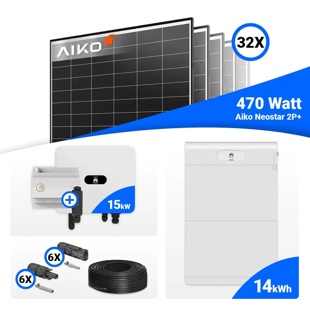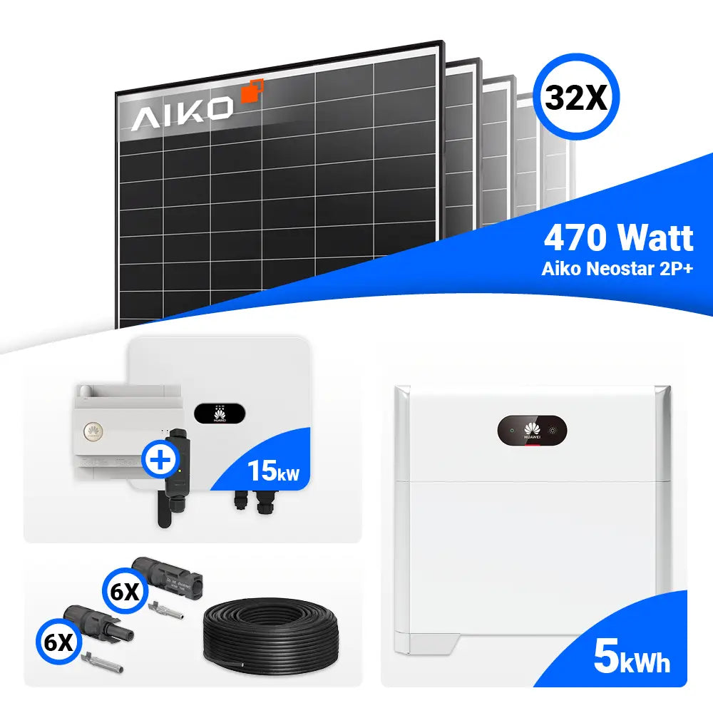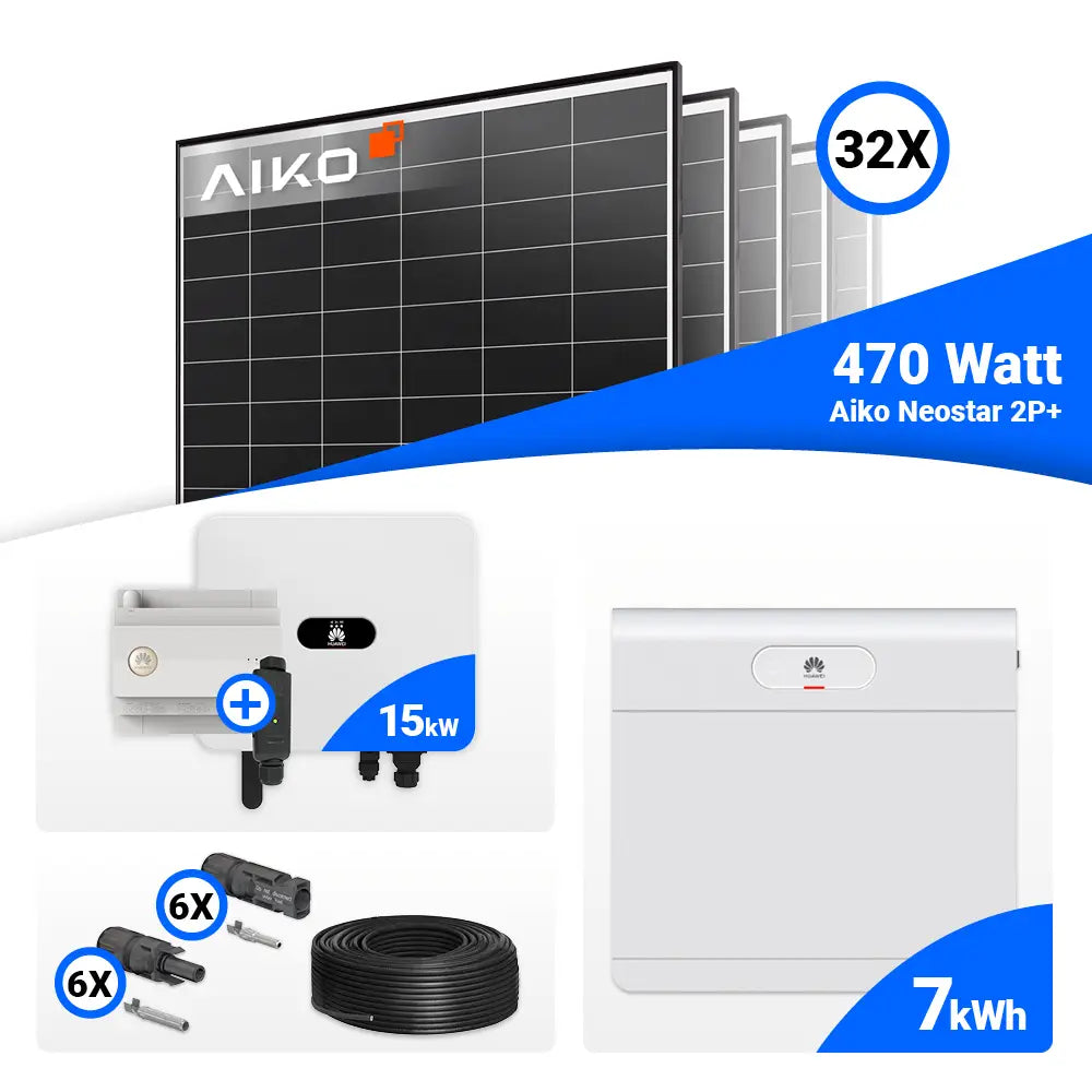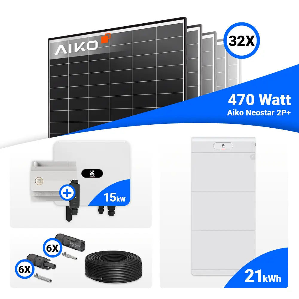 PV Komplettset 15 kWp – 32x AIKO 470W Black Frame & Huawei SUN2000-15K-MB0 mit Speicheroption
