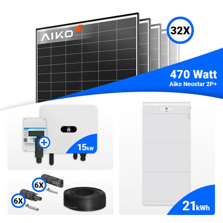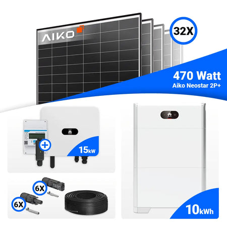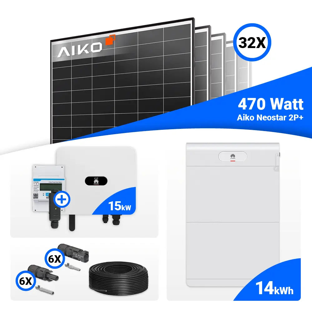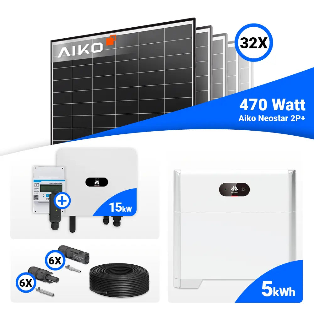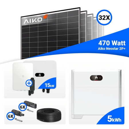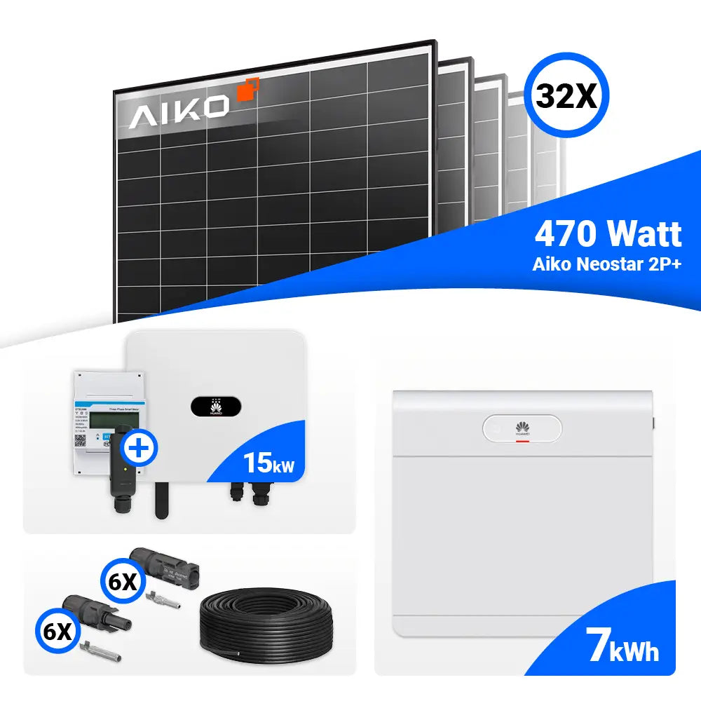 PV Komplettset 15 kWp – 32x AIKO 470W Black Frame & Huawei SUN2000-15K-MB0 mit Speicheroption