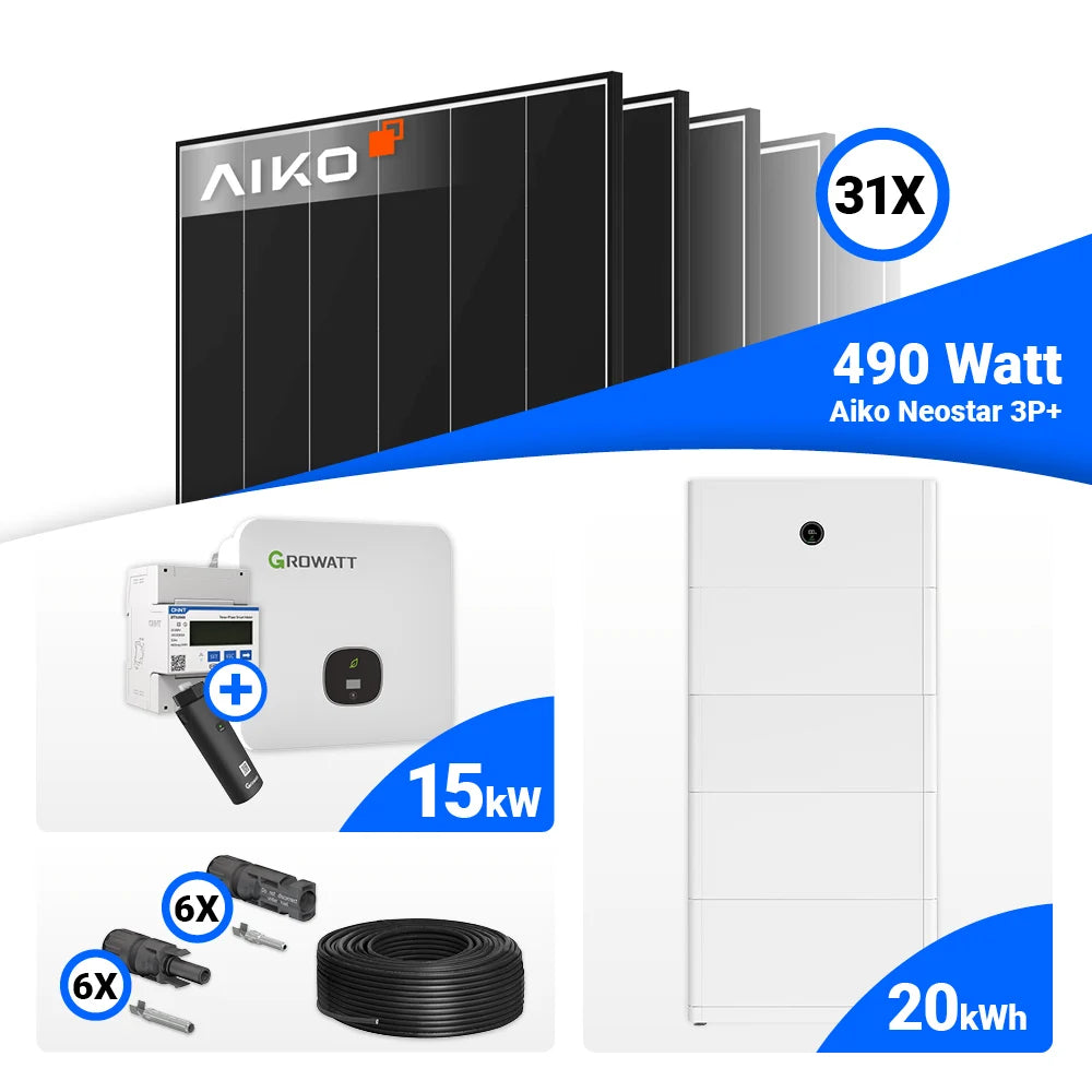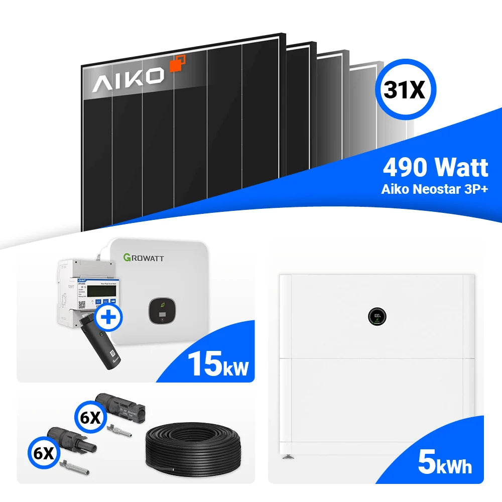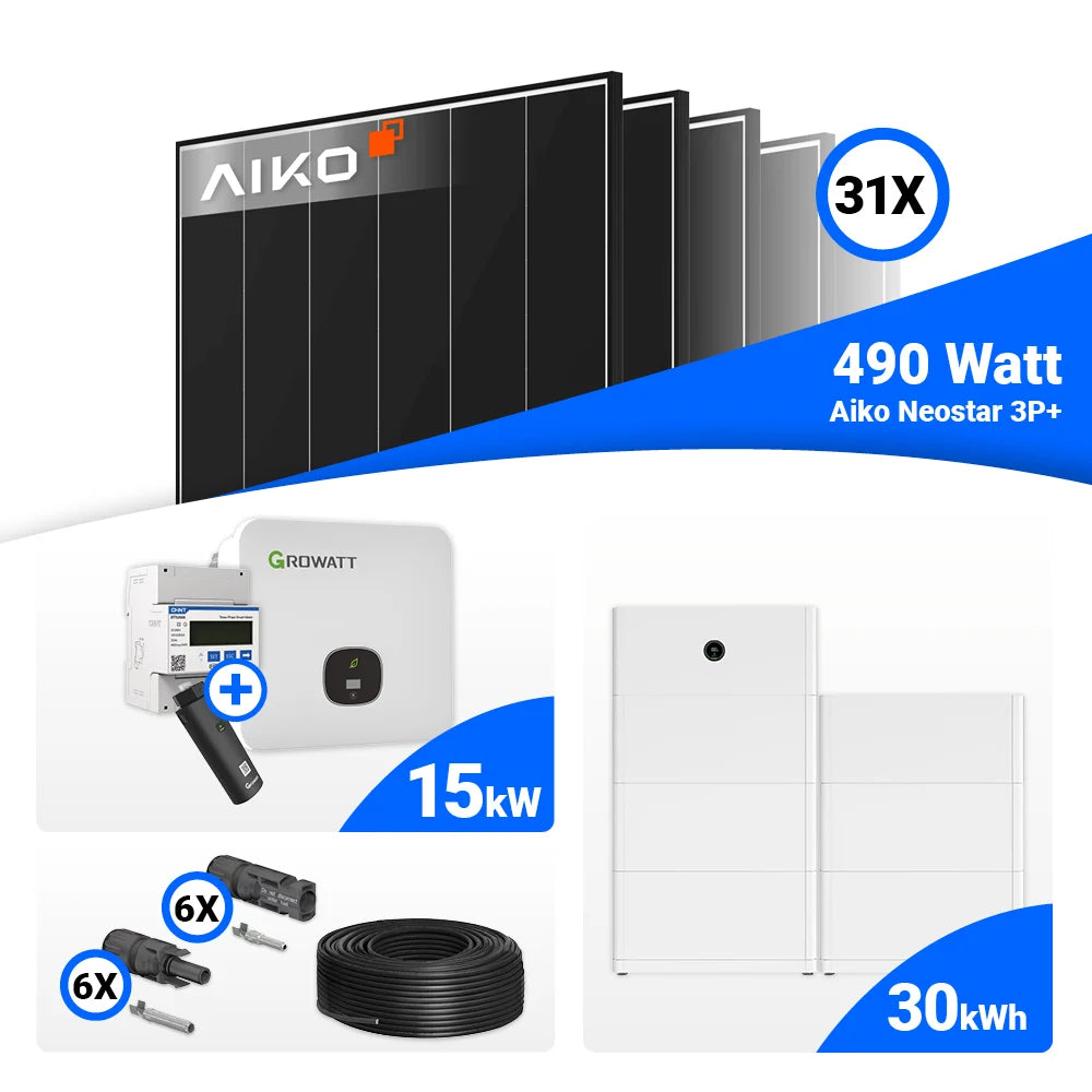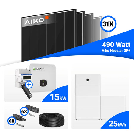 PV Komplettset 15 kWp – 31x AIKO 490W Black Frame & Growatt MOD 15KTL3-HU mit Speicheroption