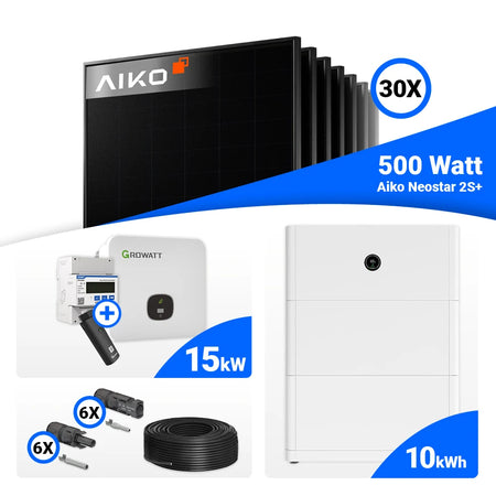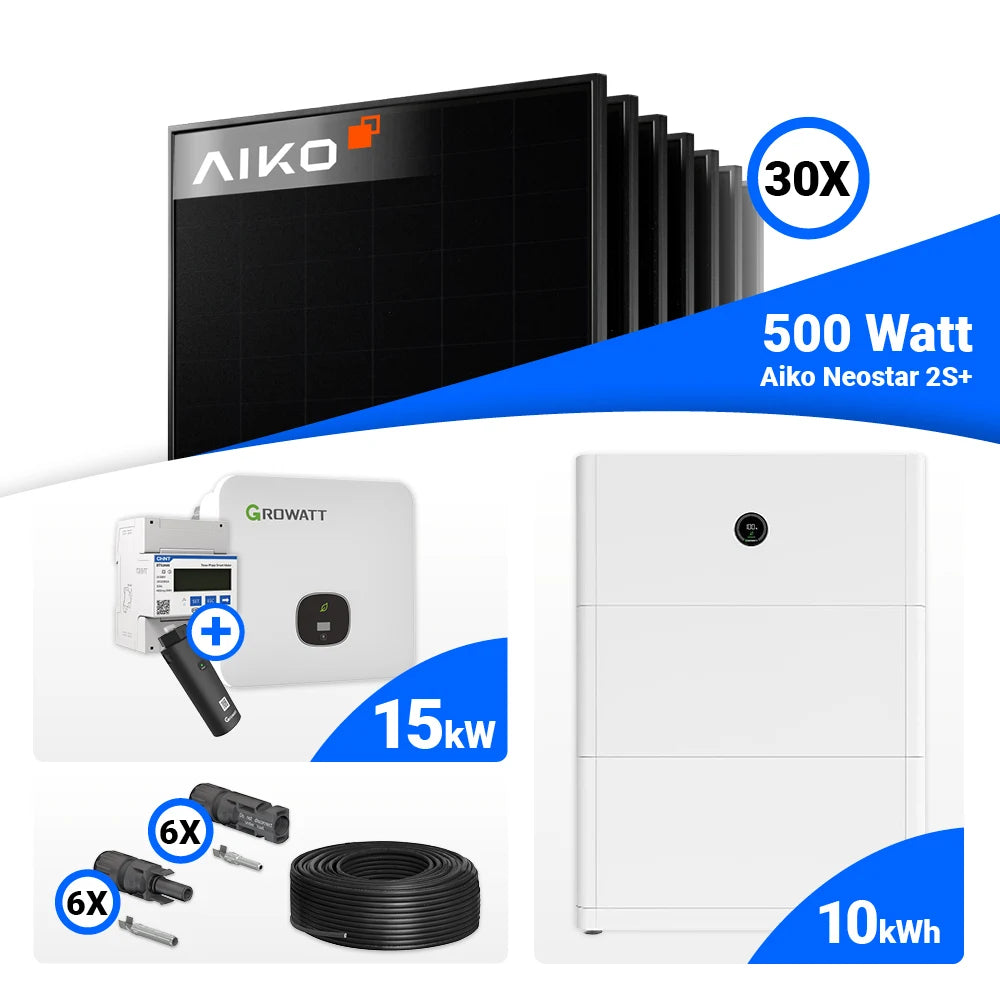 PV Komplettset 15 kWp – 30x AIKO 500W Full Black & Growatt MOD 15KTL3-HU mit Speicheroption