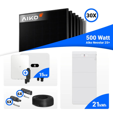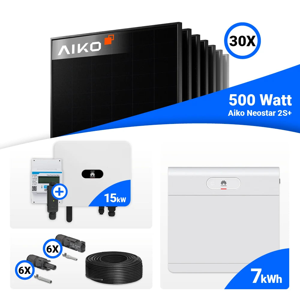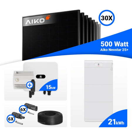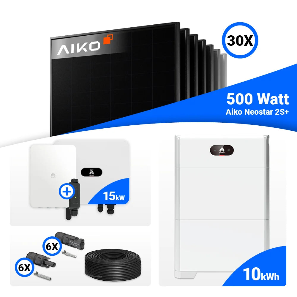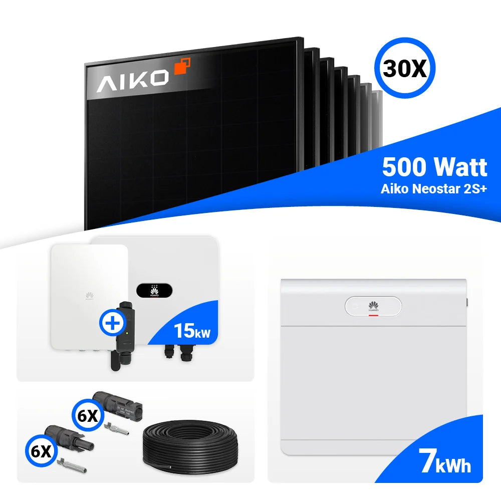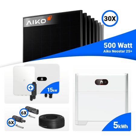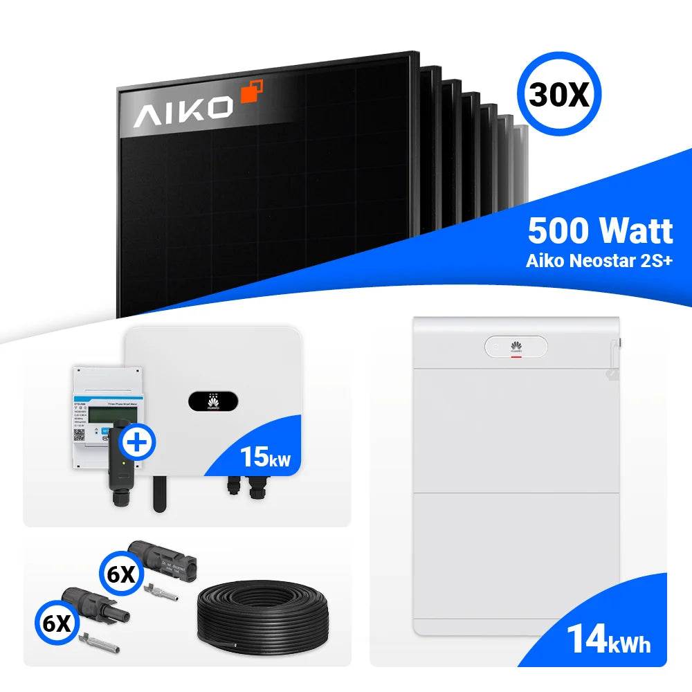 PV Komplettset 15 kWp – 30x AIKO 500W Full Black & Huawei SUN2000-15K-MB0 mit Speicheroption