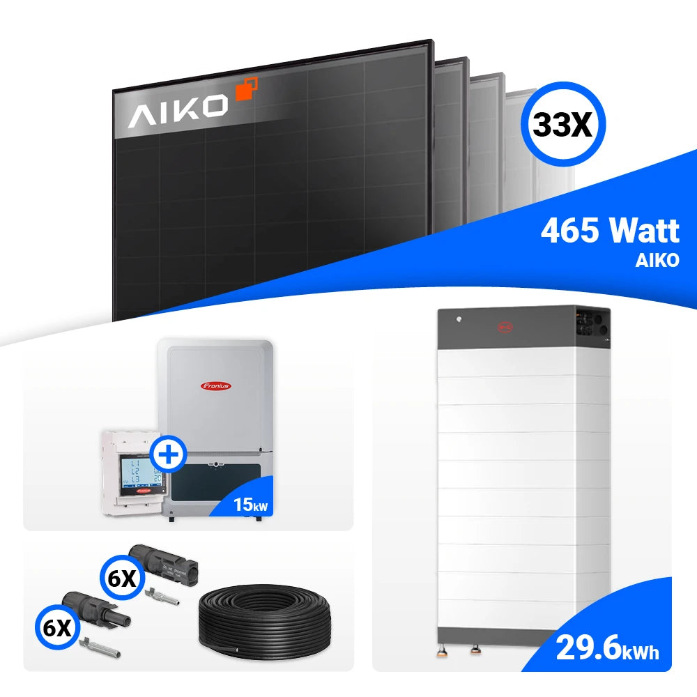 PV Komplettset 15 kWp – 33x AIKO 465W Full Black & Fronius Verto Plus 15.0 mit Speicheroption