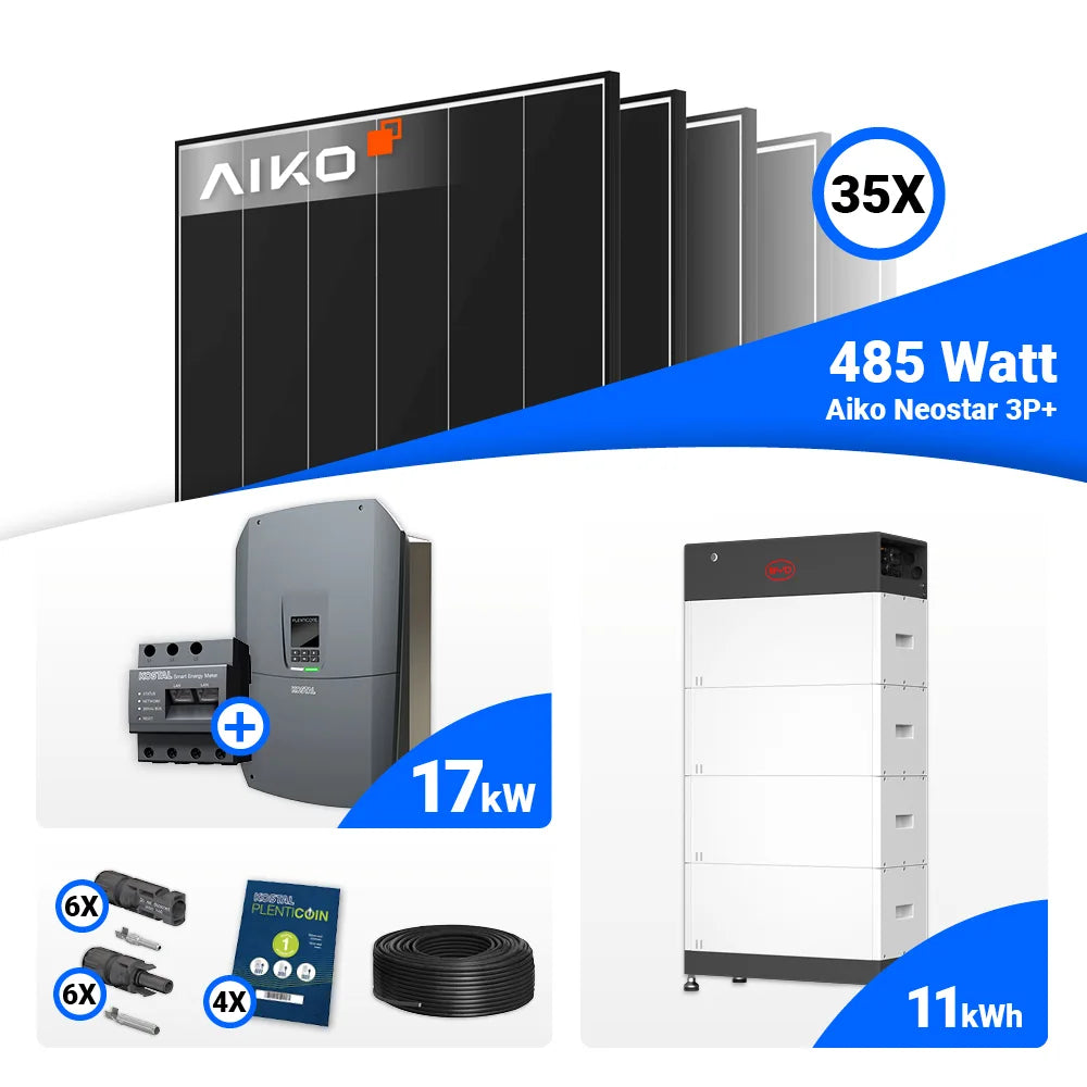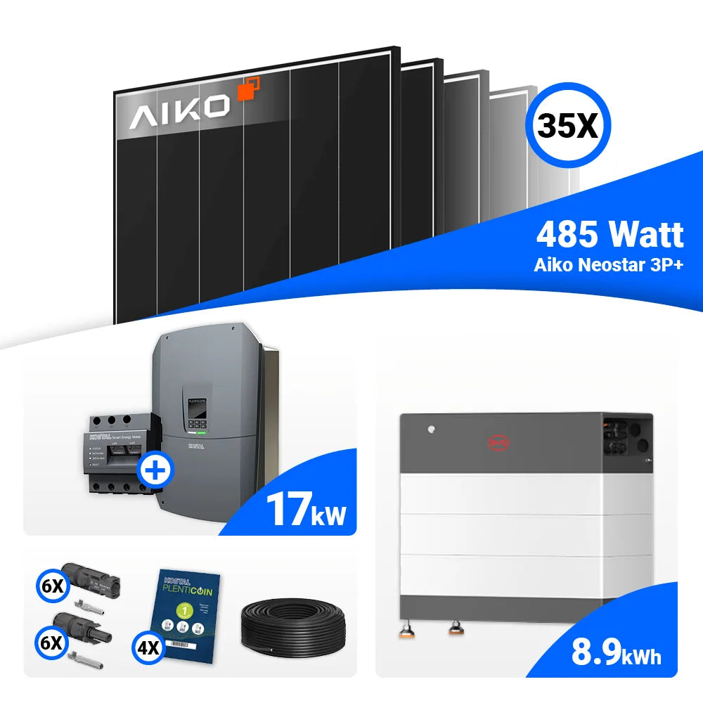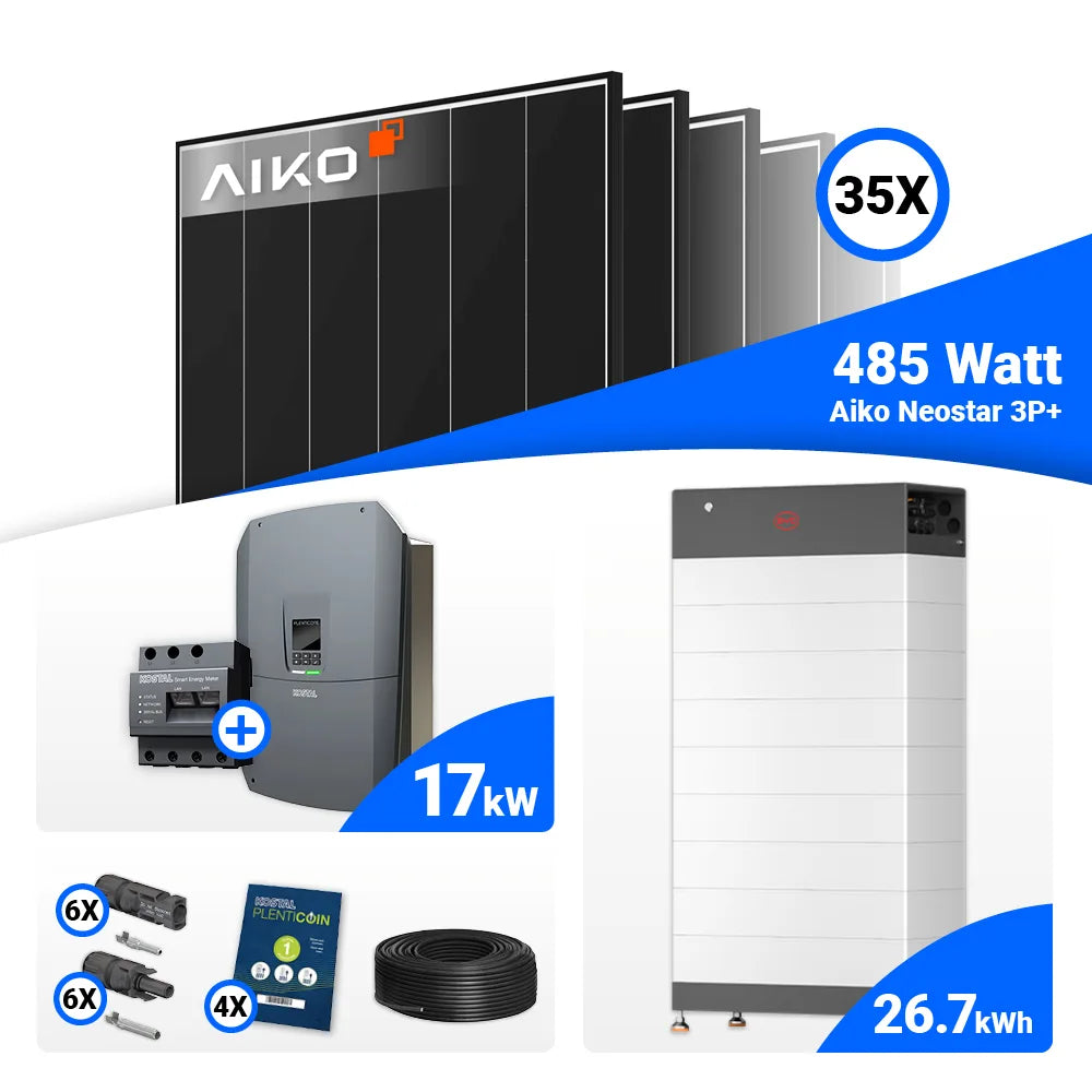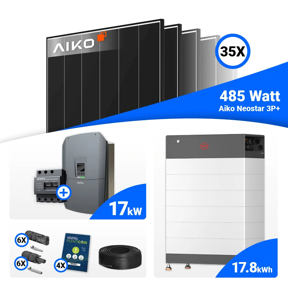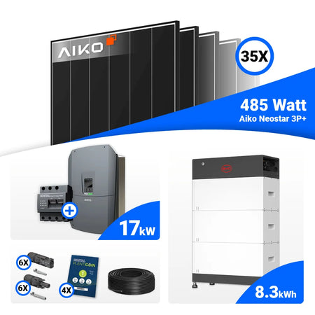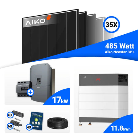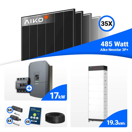 PV Komplettset 17 kWp – 35x AIKO 485W Black Frame & Kostal PLENTICORE G3 L mit Speicheroption