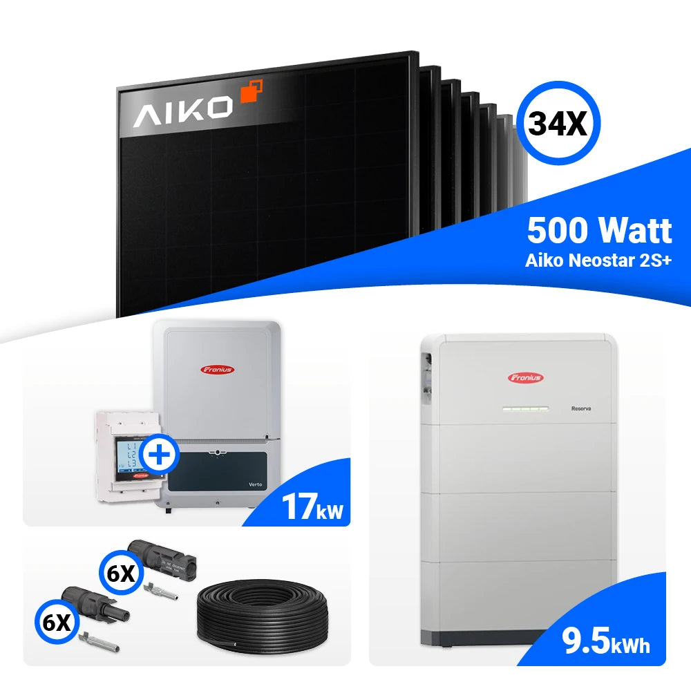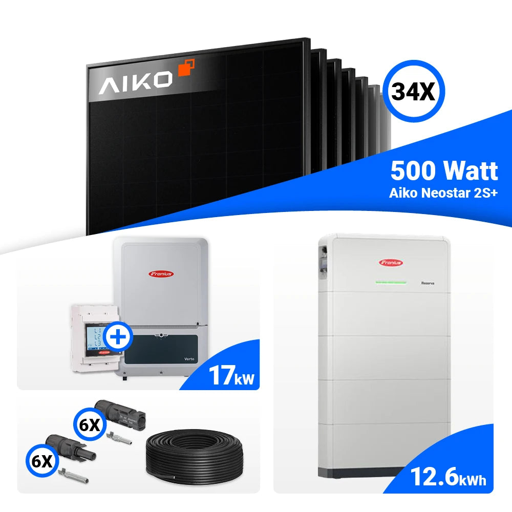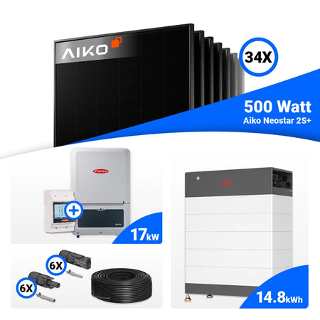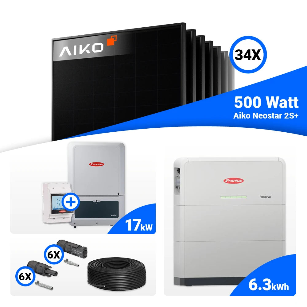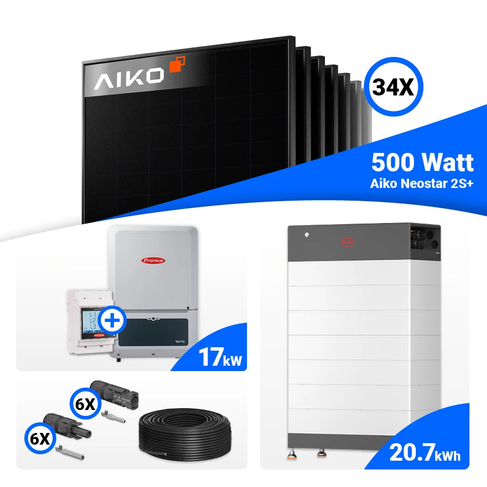 PV Komplettset 17 kWp – 34x AIKO 500W Full Black & Fronius Verto Plus 17.5 mit Speicheroption