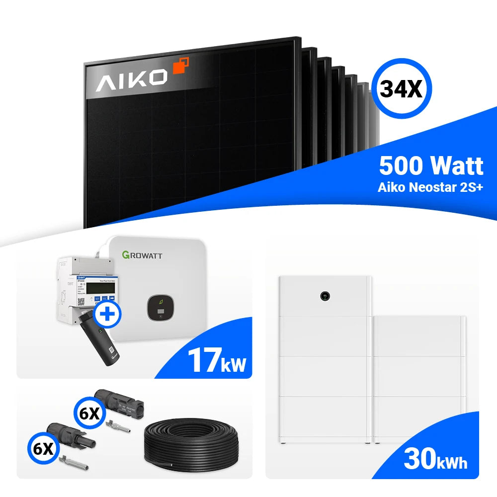 PV Komplettset 17kWp – 34x AIKO 500W Full Black & Growatt MID17KTL3-XH mit Speicheroption