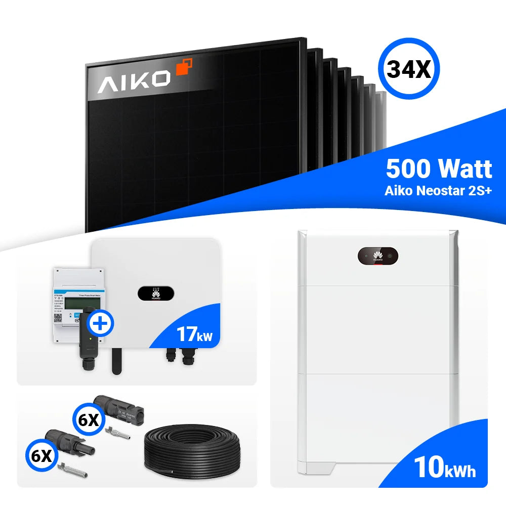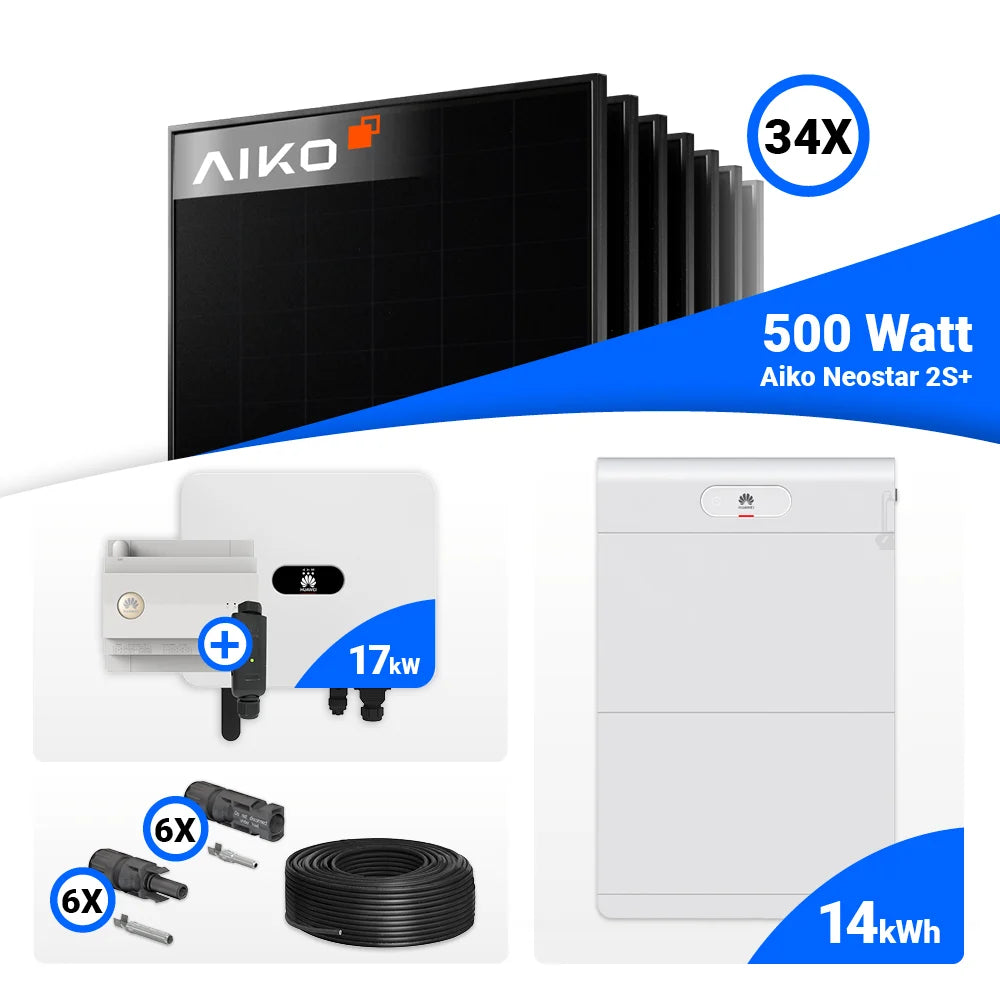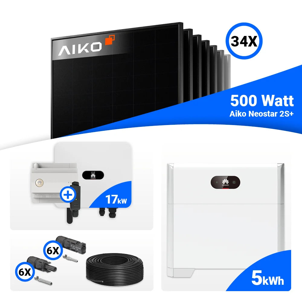 PV Komplettset 17kWp – 34x AIKO 500W Full Black & Huawei SUN2000-17K-MB0 mit Speicheroption