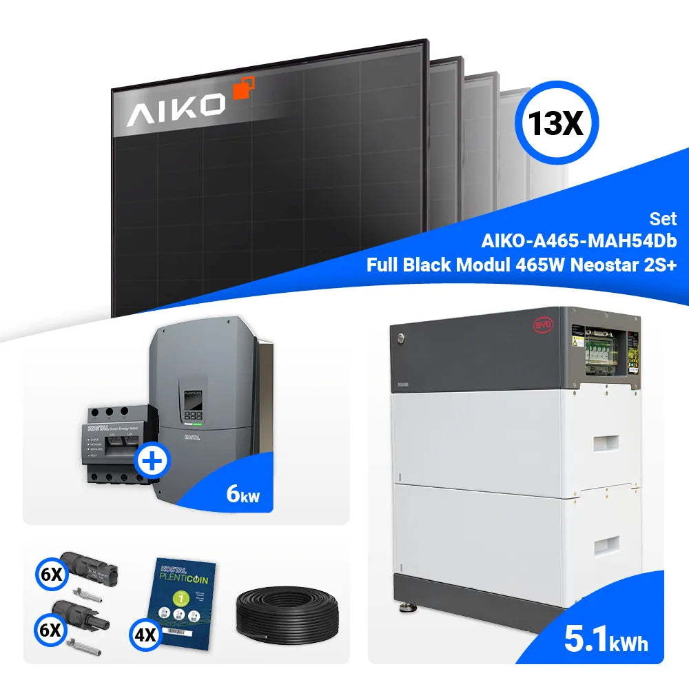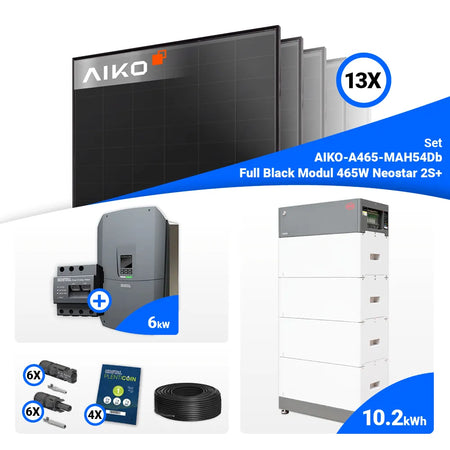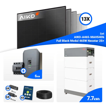 PV Komplettset 6 kWp – 13x AIKO 465W Full Black & Kostal G3 S Plenticore mit Speicheroption