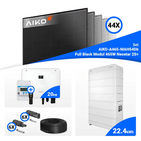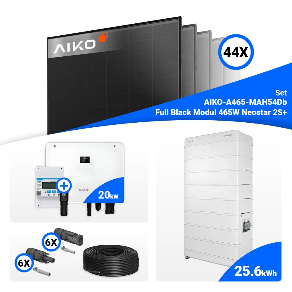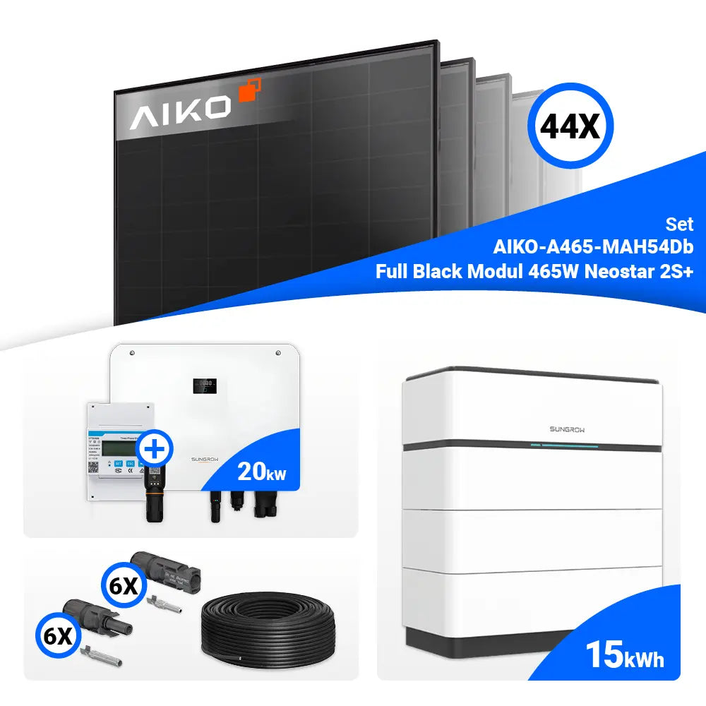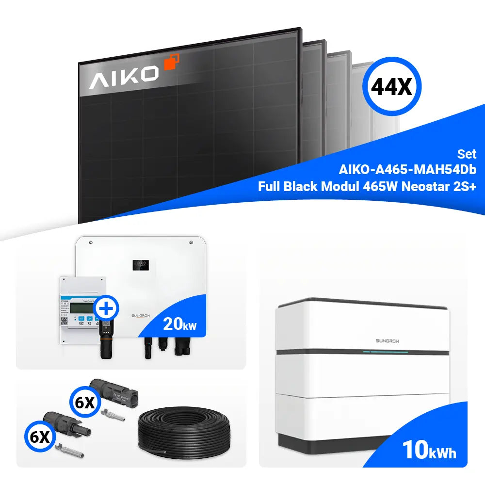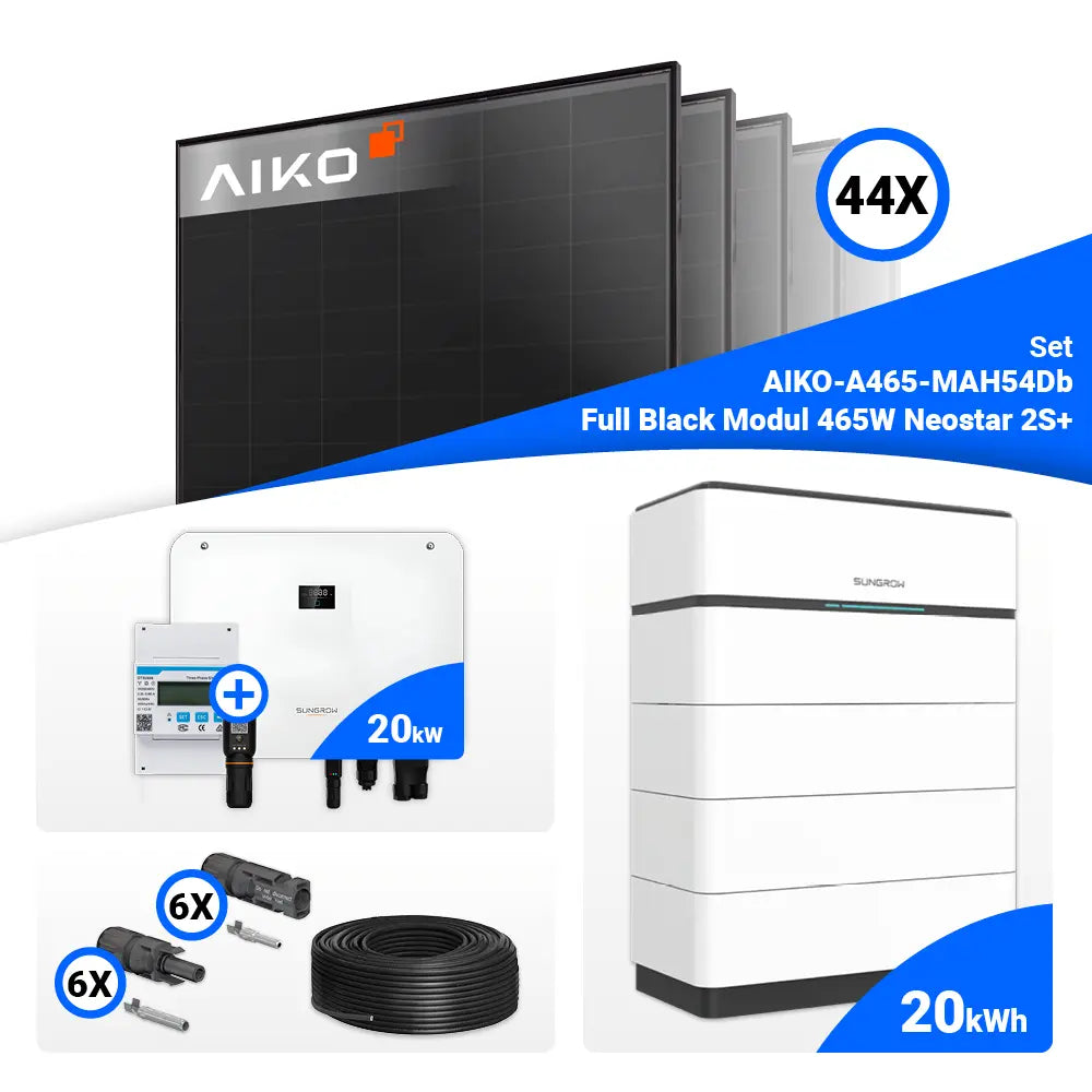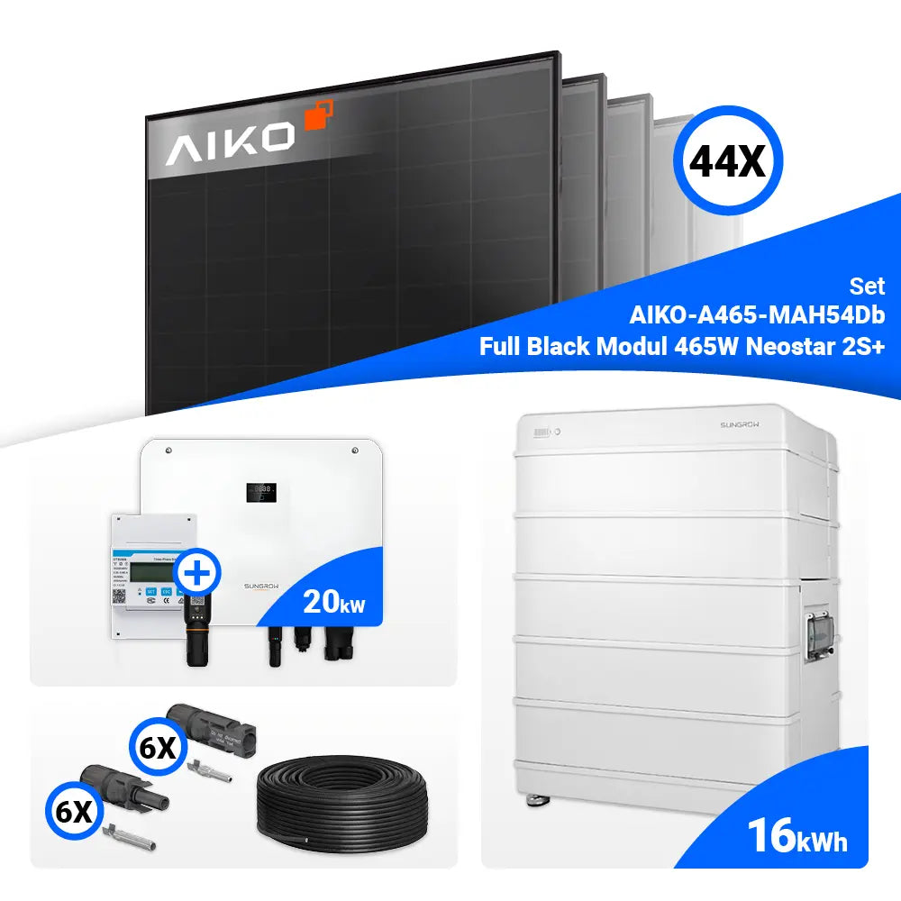 PV Komplettset 20 kWp – 44x AIKO 465W Full Black & Sungrow Hybrid SH20T mit Speicheroption