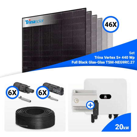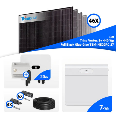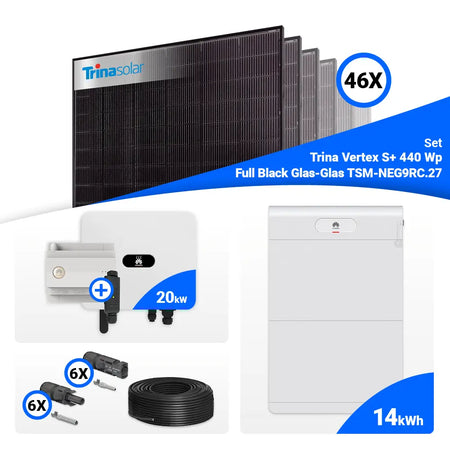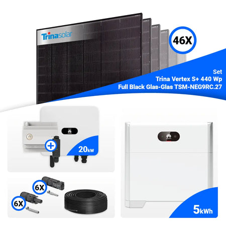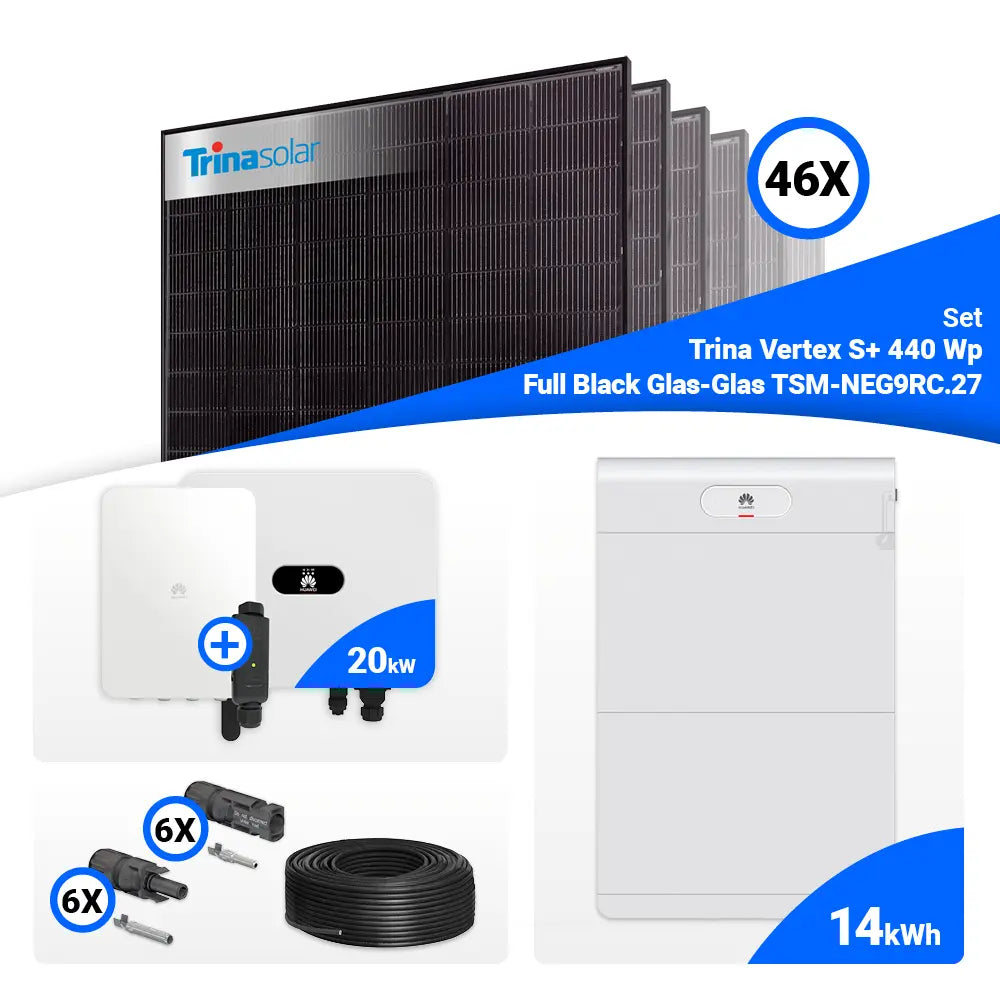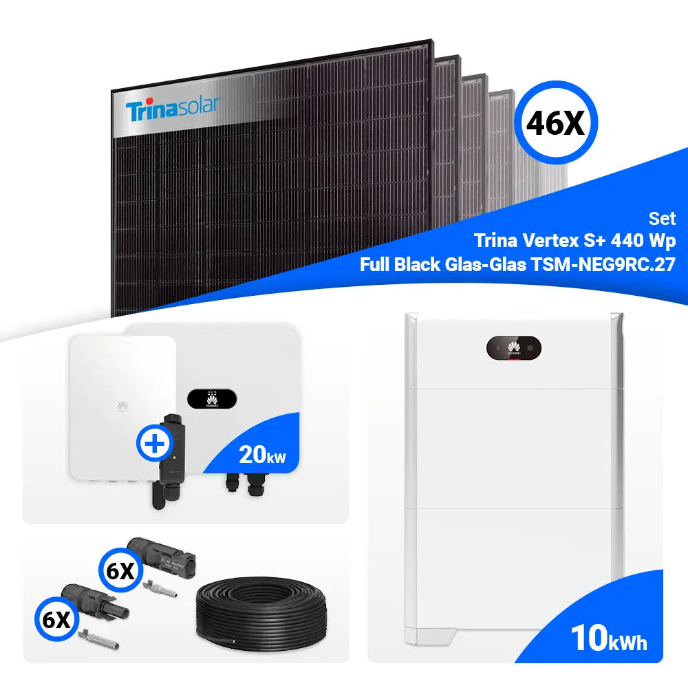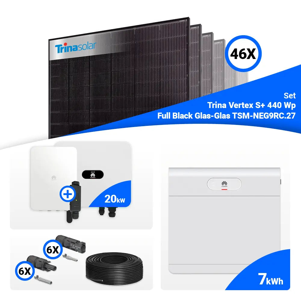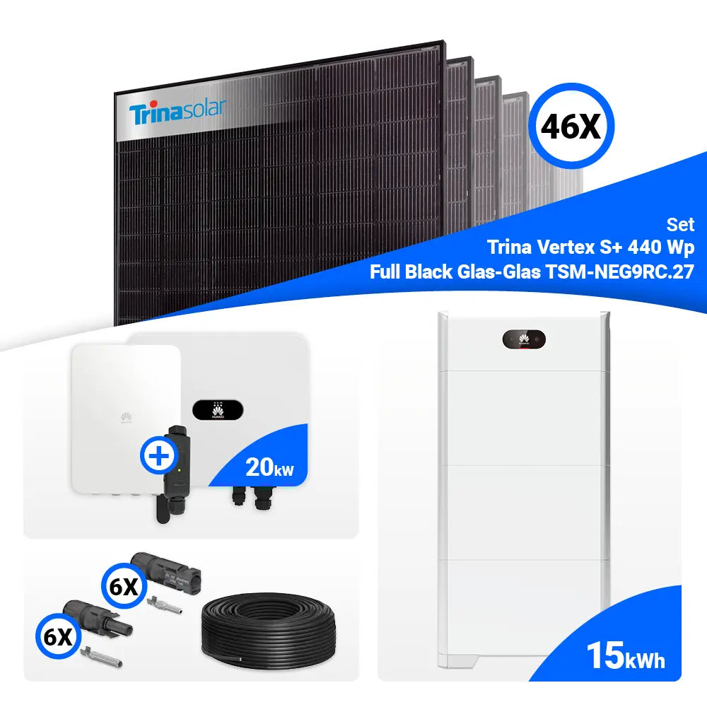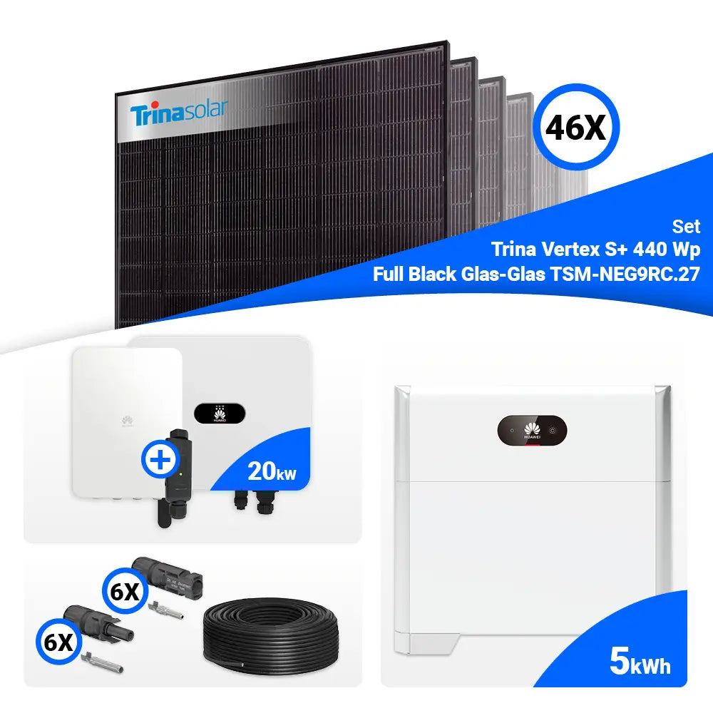 PV Komplettset 20 kWp – 46x Trina 440W Full Black Bifazial & Huawei SUN2000-20K-MB0 mit Speicheroption