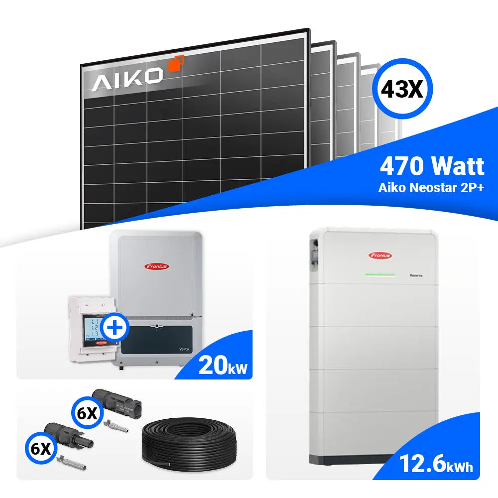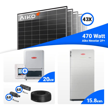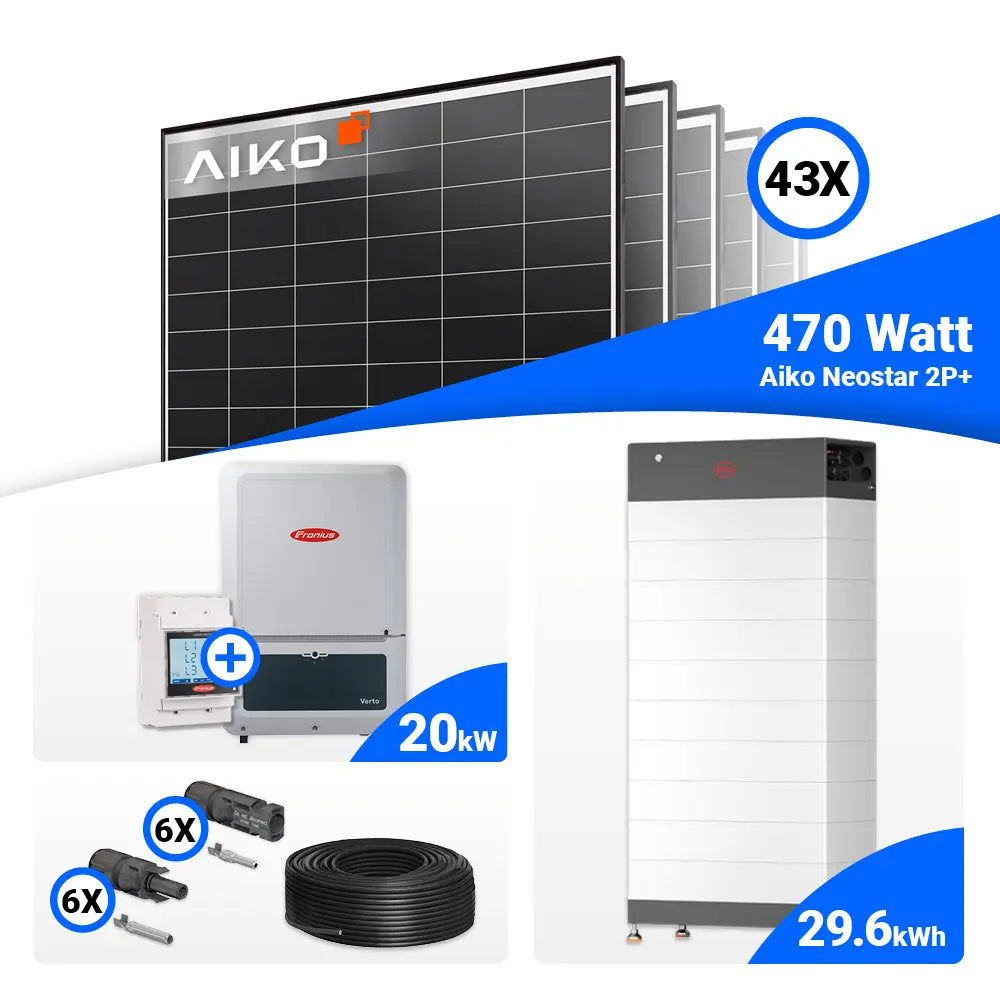 PV Komplettset 20 kWp – 43x AIKO 470W Black Frame & Fronius Verto Plus 20.0 mit Speicheroption