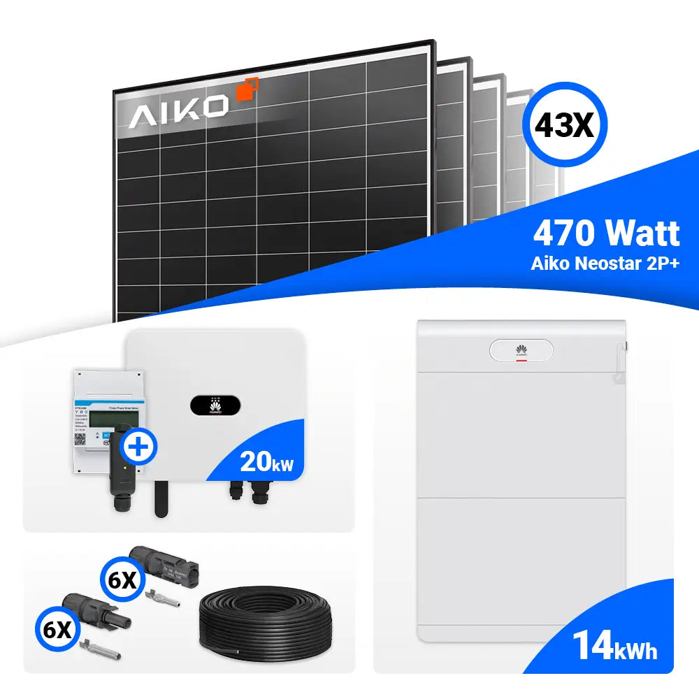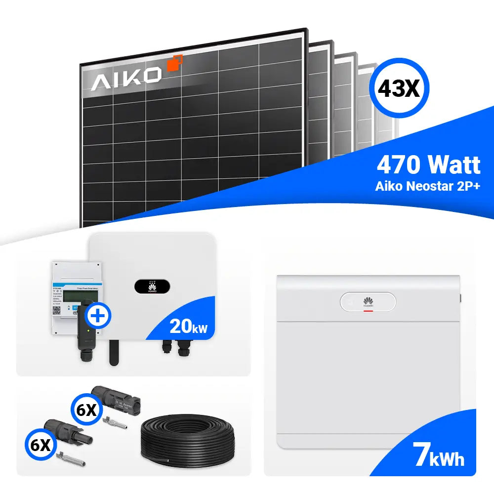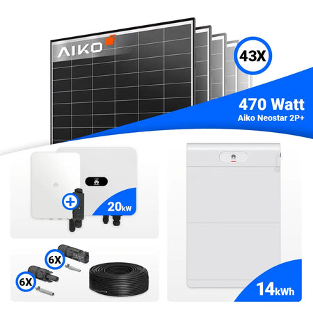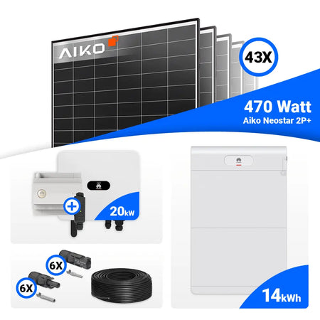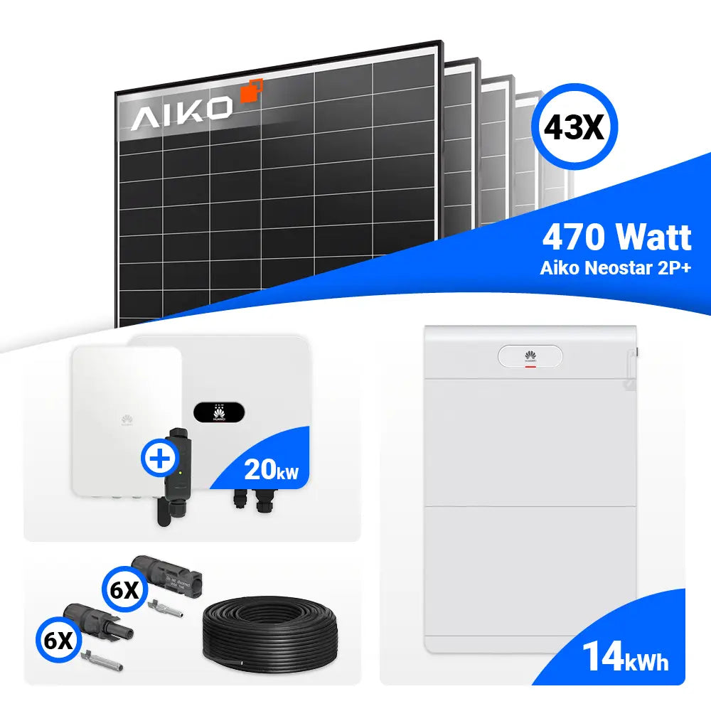 PV Komplettset 20 kWp – 43x AIKO 470W Black Frame & Huawei SUN2000-20K-MB0 mit Speicheroption