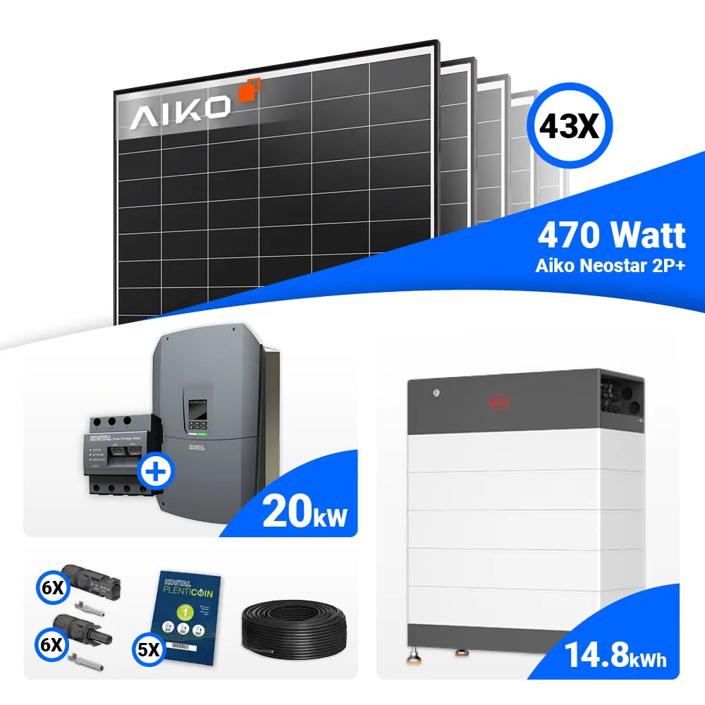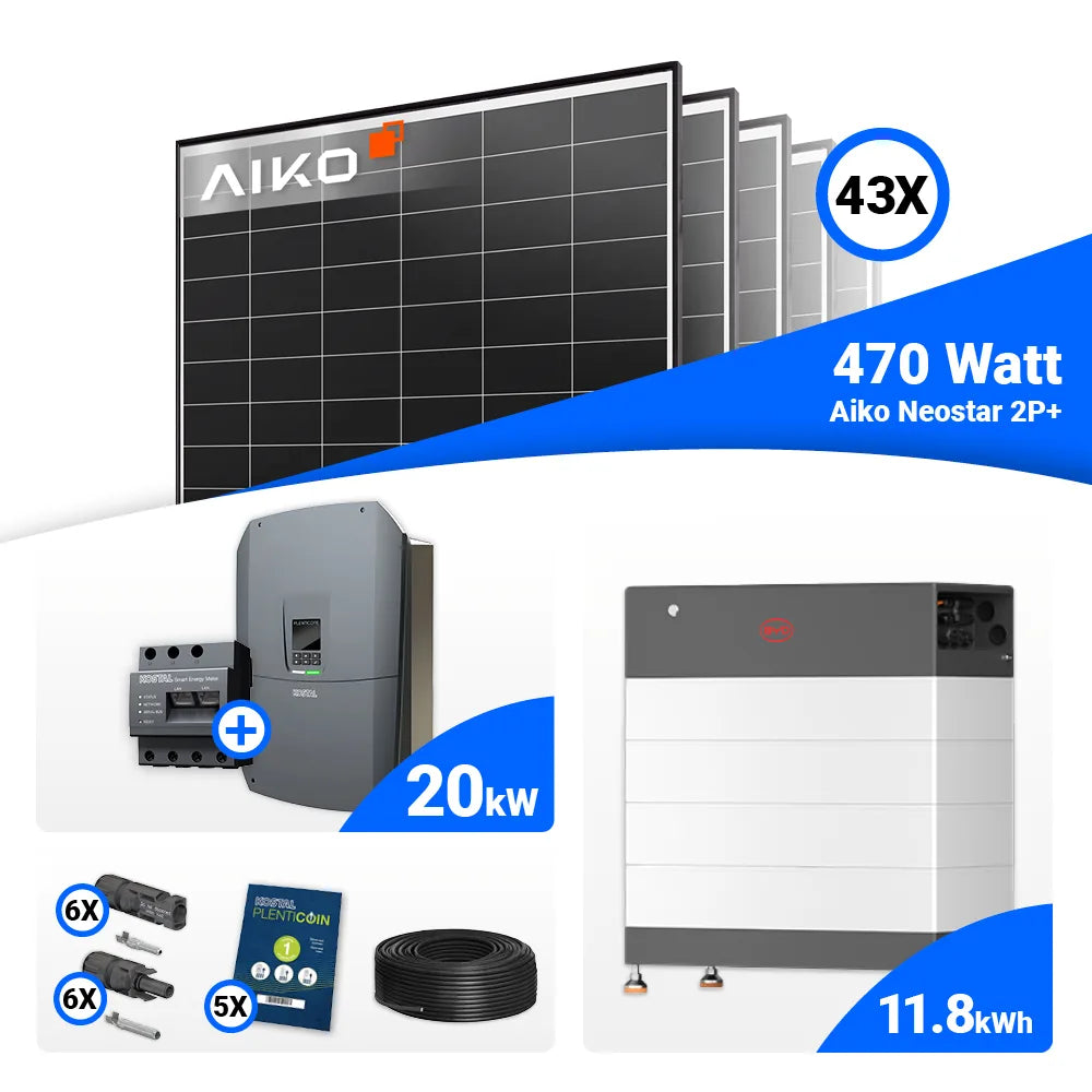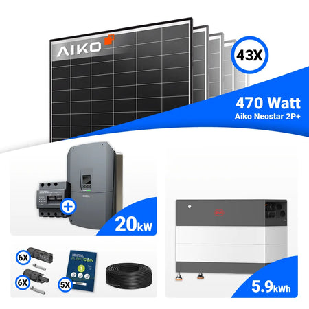 PV Komplettset 20 kWp – 43x AIKO 470W Black Frame & Kostal G3 L Plenticore mit Speicheroption