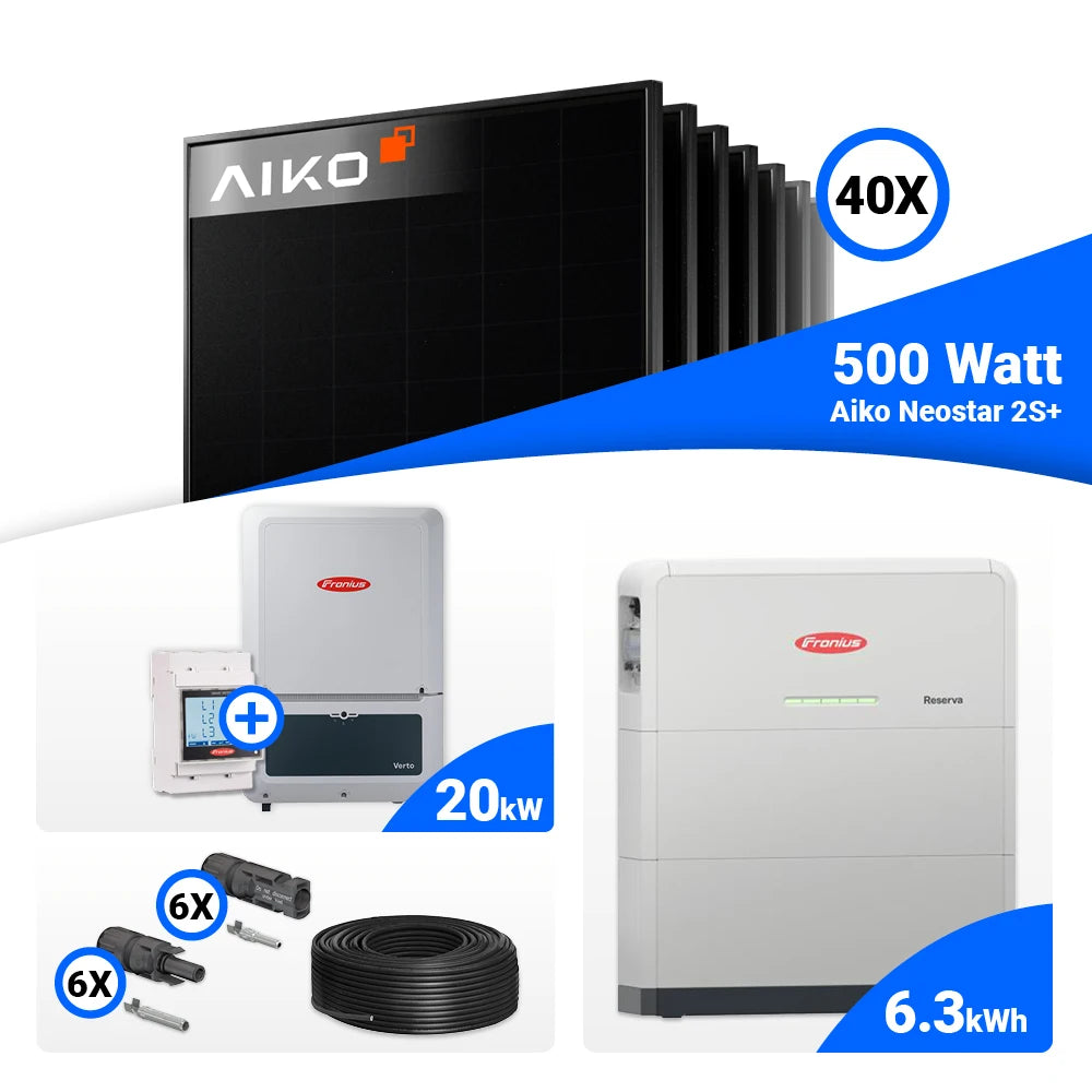 PV Komplettset 20 kWp – 40x AIKO 500W Full Black & Fronius Verto Plus 20.0 mit Speicheroption
