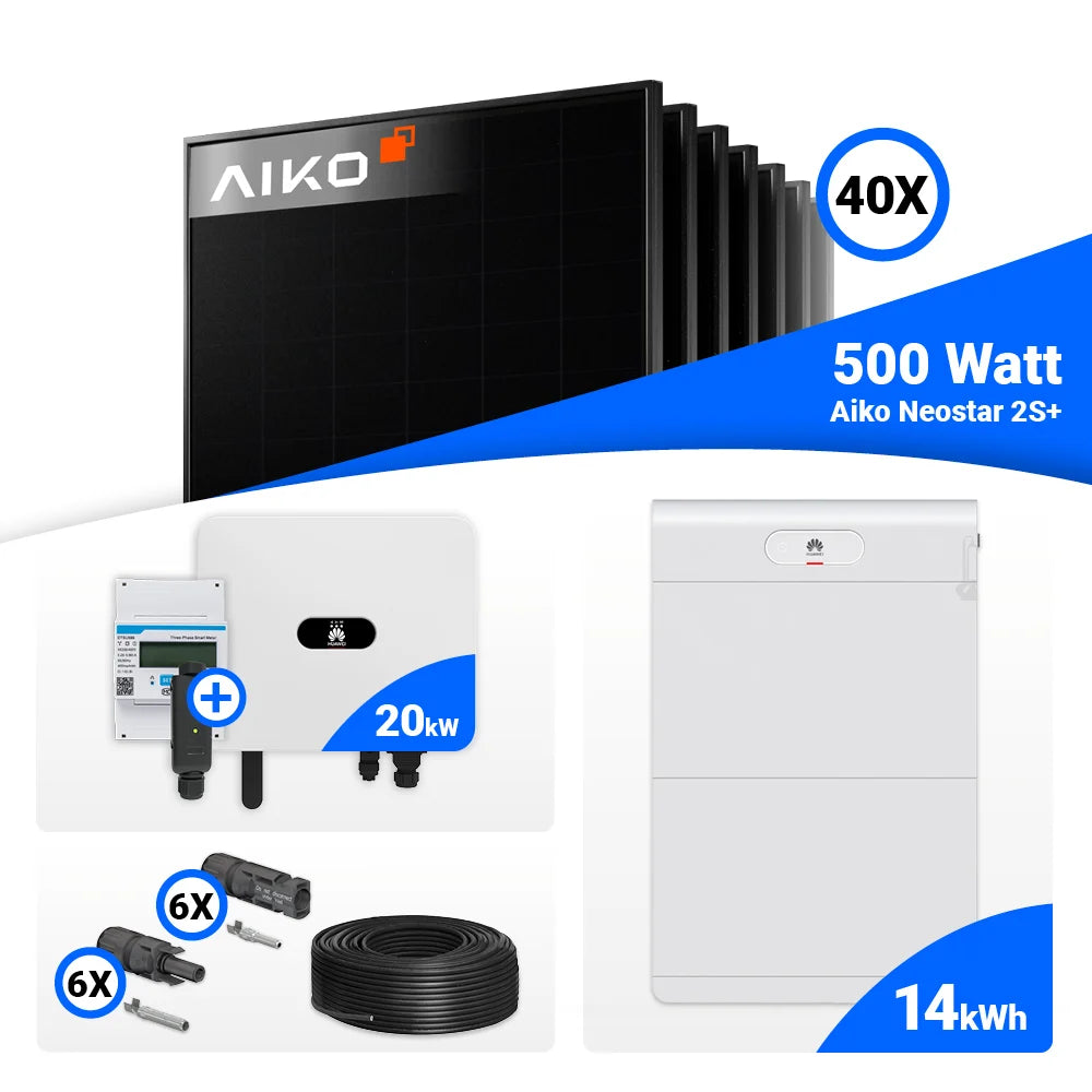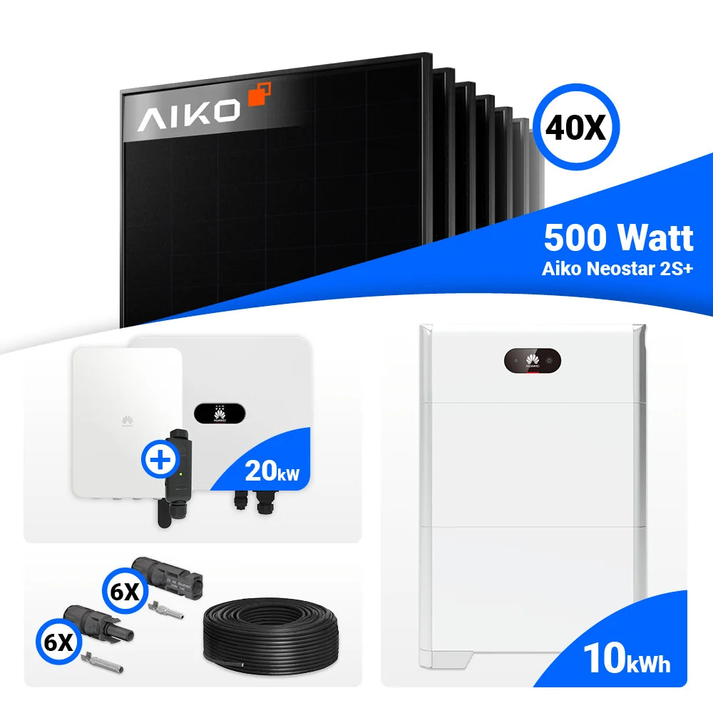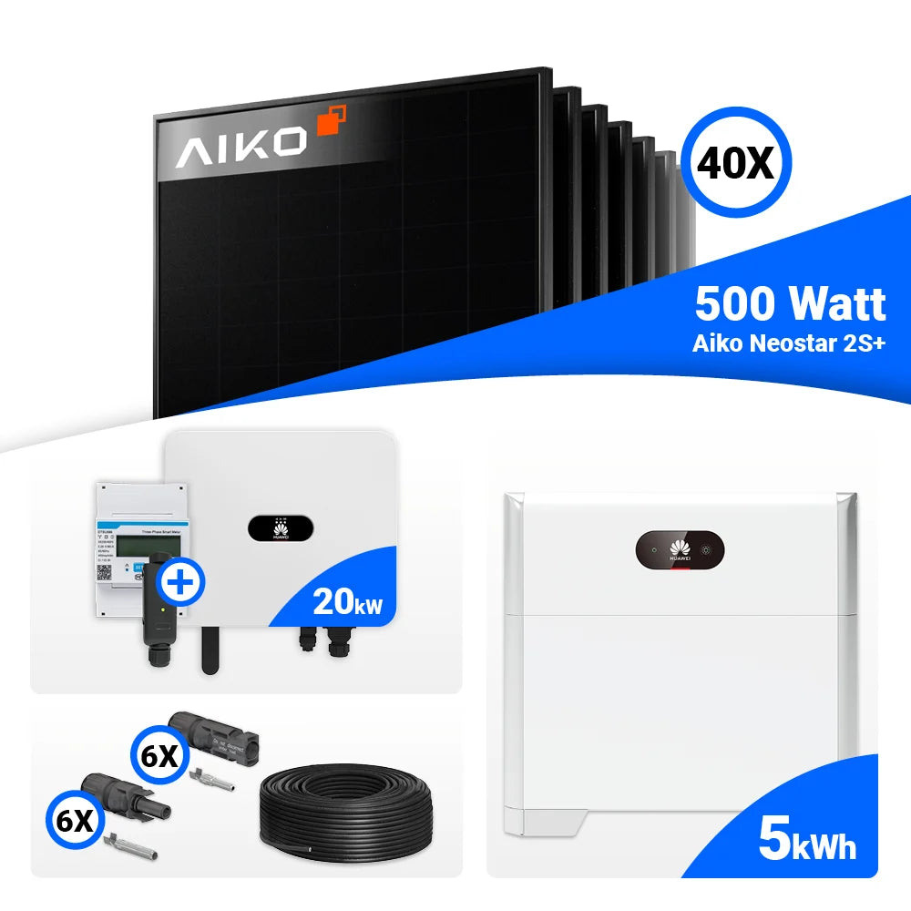 PV Komplettset 20 kWp – 40x AIKO 500W Full Black & Huawei SUN2000-20K-MB0 mit Speicheroption