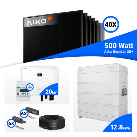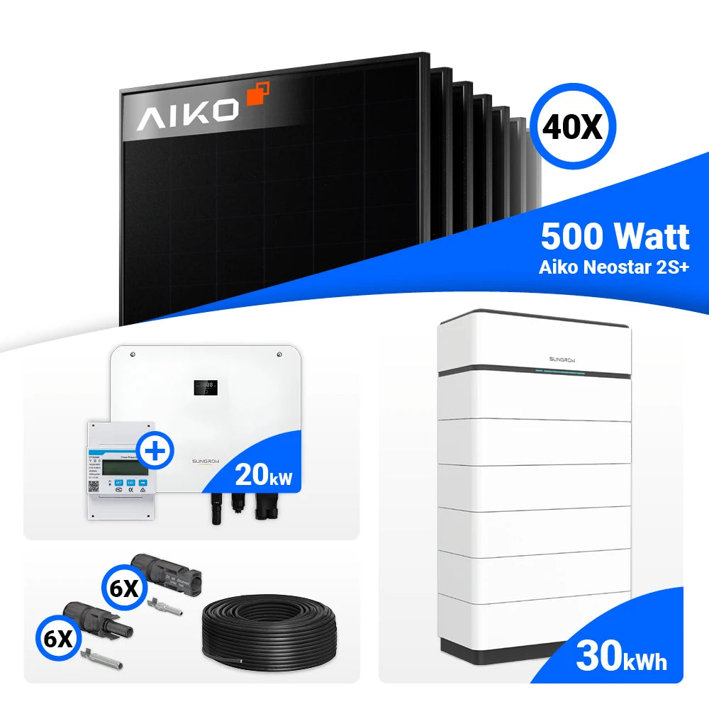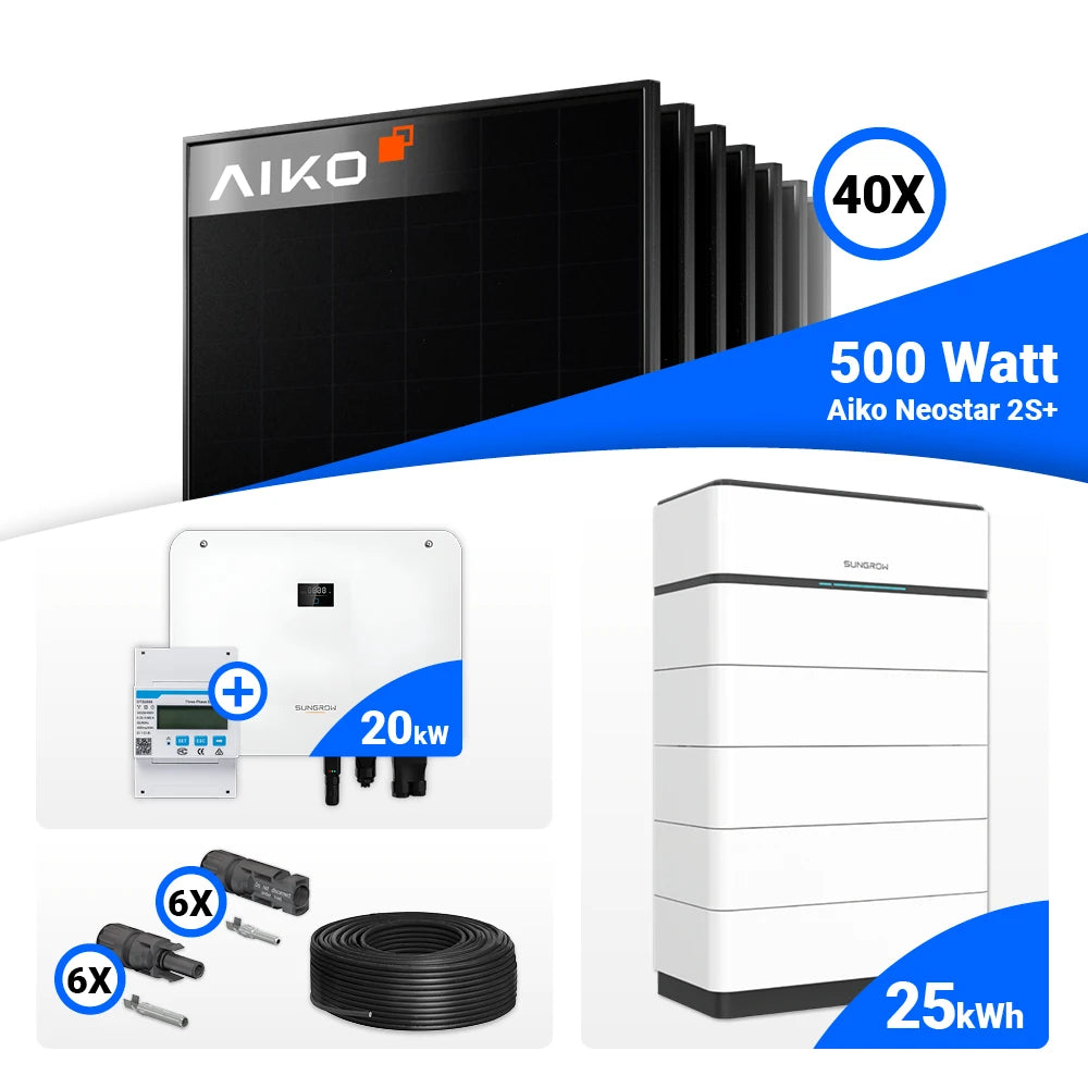 PV Komplettset 20 kWp – 40x AIKO 500W Full Black & Sungrow Hybrid SH20T mit Speicheroption