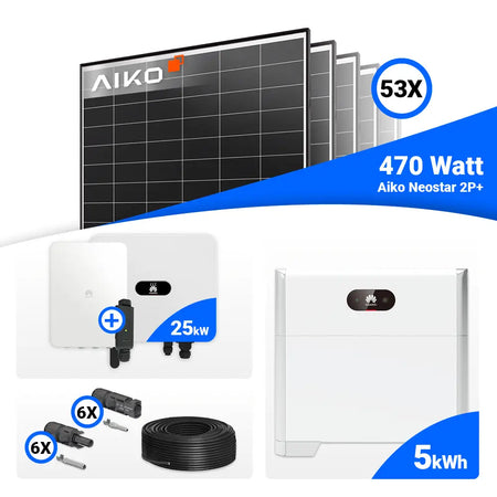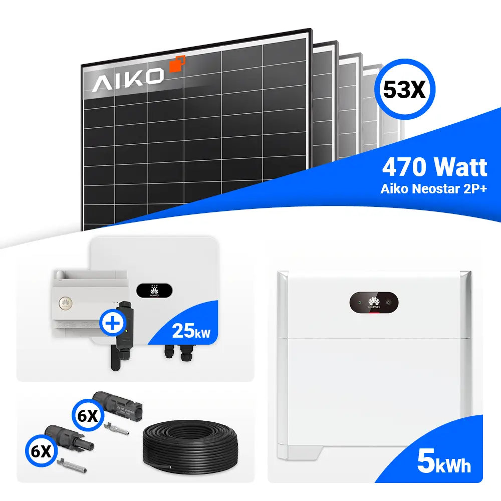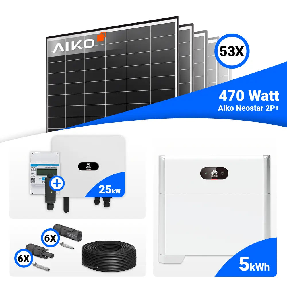 PV Komplettset 25 kWp – 53x AIKO 470W Black Frame & Huawei SUN2000-25K-MB0 mit Speicheroption